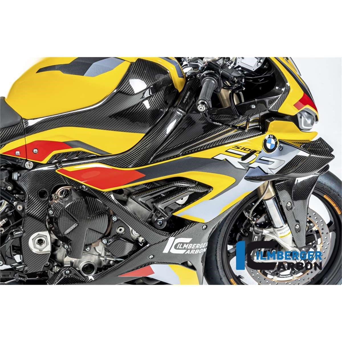 Das Racing Verkleidungsseitenteil für die BMW M 1000 RR ab 2021 ersetzt das originale Bauteil unter Verwendung der originalen Befestigungspunkte. Der obere Teil des Verkleidungsseitenteils ist an diesen Carbonteilen einteilig mit den Seitenteilen gefertigt, das obere Teil des Verkleidungsseitenteils muss bei unseren Verkleidungsseitenteilen nicht extra dazugekauft werden.
