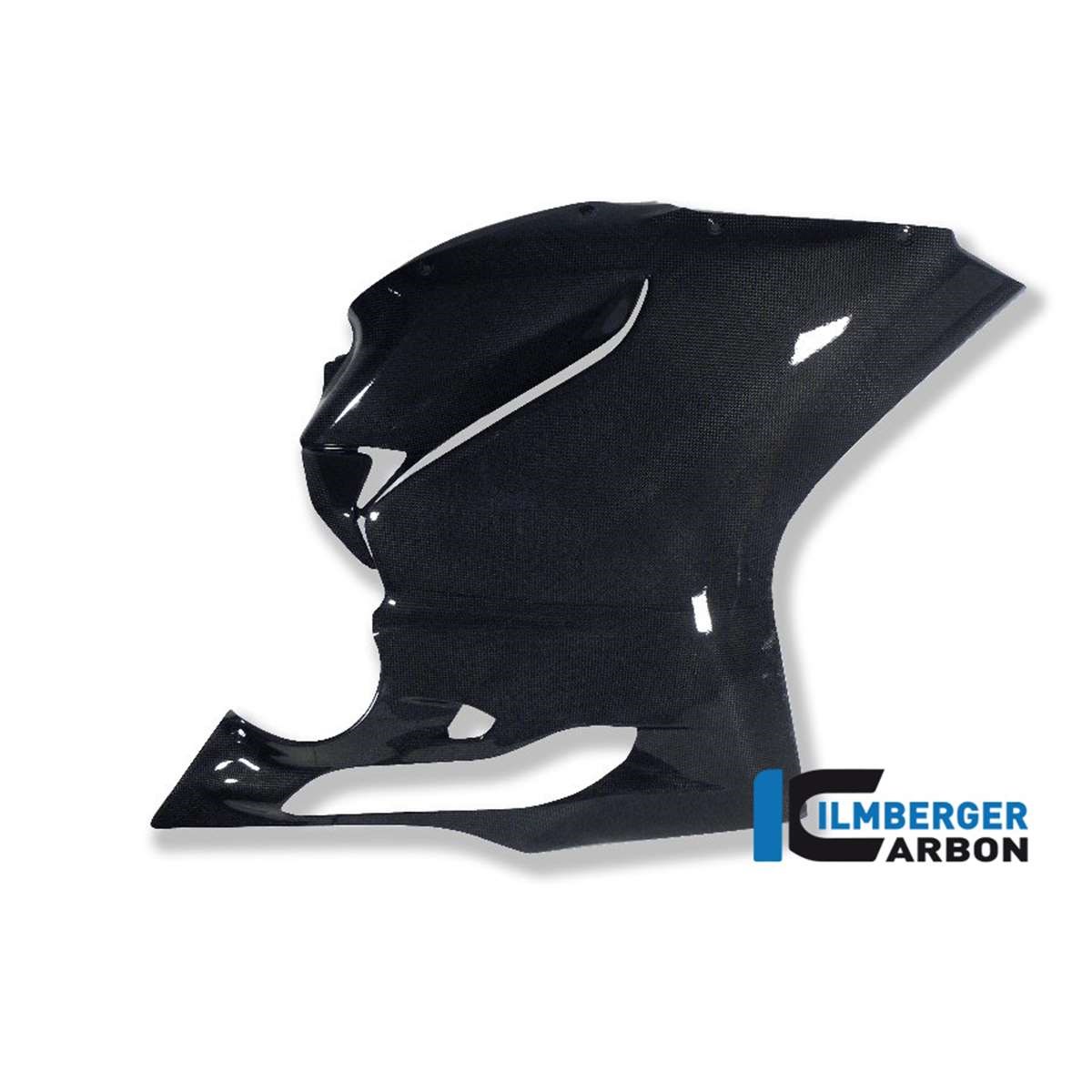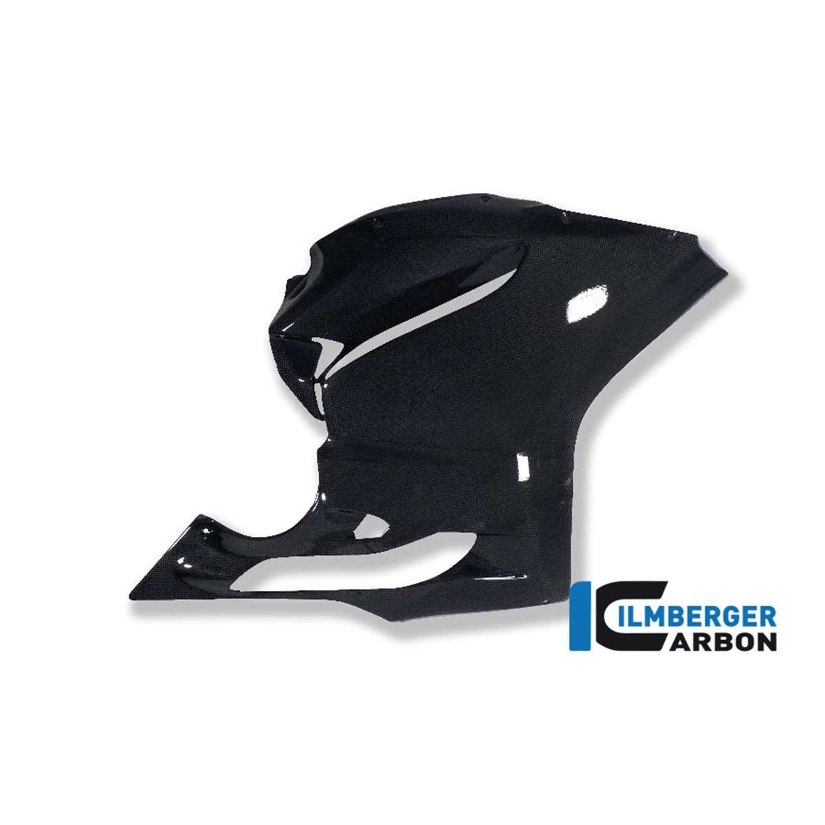 Das Verkleidungsseitenteil in Carbon für die Ducati 1199 Panigale ersetzt das originale Bauteil unter Verwendung der originalen Befestigungspunkte. Im Vordergrund stehen Gewichtsersparnis (in der Regel Einsparung von ca. 70% im Vergleich zum originalen Bauteil) und höhere Steifigkeit.  Das Carbonteil wurde nach den neuesten Richtlinien im Autoklaven komplett aus Prepreg (siehe FAQ) Material gefertigt und im nächsten Schritt, wie bei uns üblich, zum Schutz gegen Umwelteinflüße mit einer klaren Kunststoffbeschichtung überzogen.