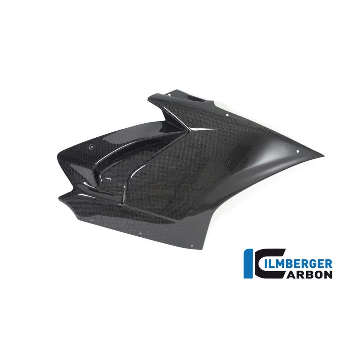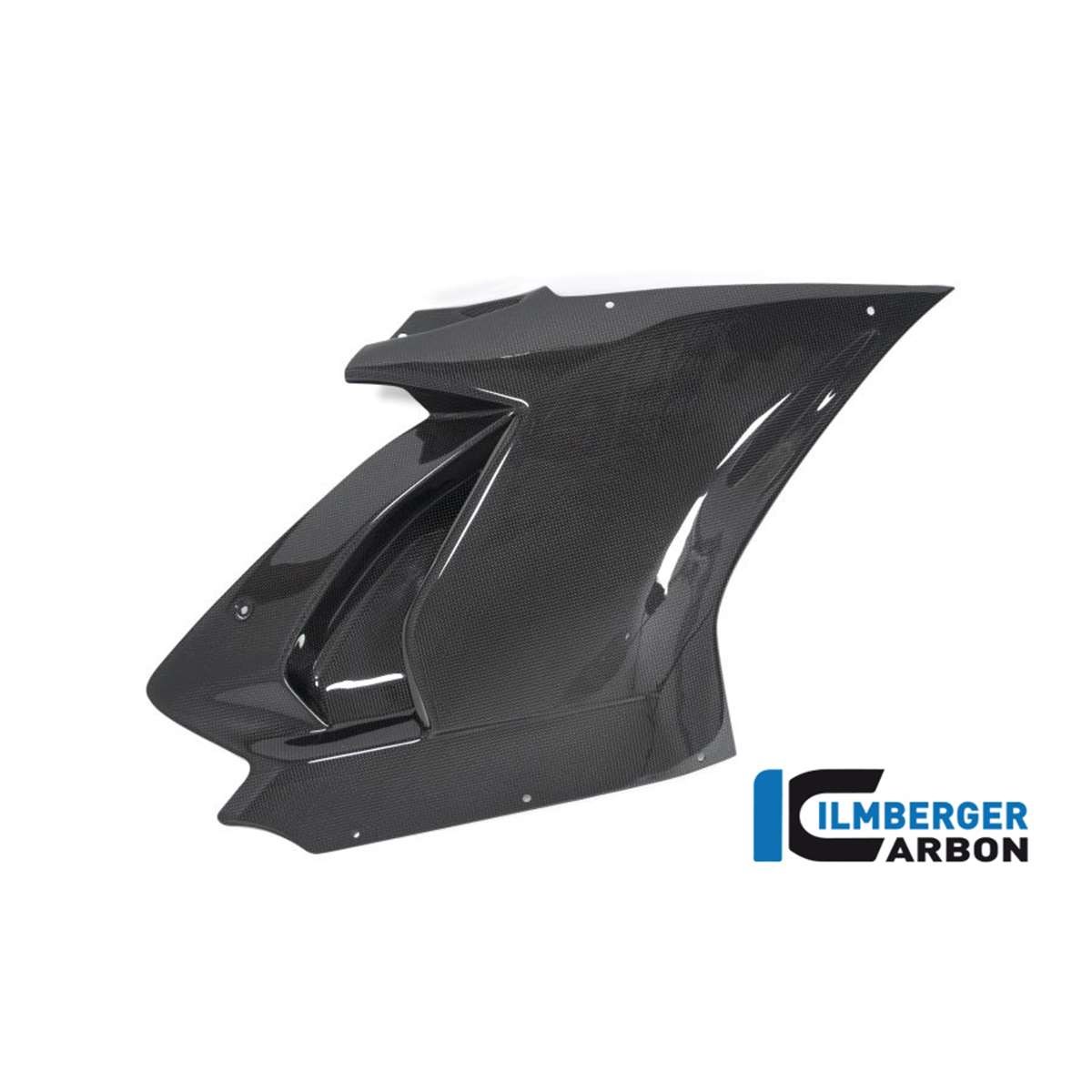 Das Verkleidungsseitenteil in Carbon für die Ducati Panigale V4 / V4 S Racing ersetzt das originale Bauteil unter Verwendung der originalen Befestigungspunkte. Im Vordergrund stehen Gewichtsersparnis (in der Regel Einsparung von ca. 70% im Vergleich zum originalen Bauteil) und höhere Steifigkeit. Das Carbonteil wurde nach den neuesten Richtlinien im Autoklaven komplett aus Prepreg (siehe FAQ) Material gefertigt und im nächsten Schritt, wie bei uns üblich, zum Schutz gegen Umwelteinflüsse mit einer klaren Kunststoffbeschichtung überzogen. Diese Kunststoffbeschichtung übertrifft den sonst üblichen Klarlacküberzug in der Schutzwirkung, Kratzfestigkeit und Beständigkeit enorm. Aber nicht nur technisch kann die Beschichtung punkten, sondern sie unterstreicht auch die dreidimensionale Wirkung der Carbonstruktur nochmals deutlich.
