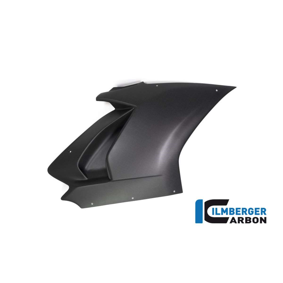 Das rechte Verkleidungsseitenteil ist strömungstechnisch optimiert und verbessert durch die veränderte Luftführung die Kühlung der Motor- und Wassertemperatur signifikant. Der Motor bleibt dadurch deutlich kühler und leistungsfähiger. Das matte Finish der Oberfläche passt hervorragend zu den original verbauten Carbonteilen der Panigale V4 / V4 S Racing.