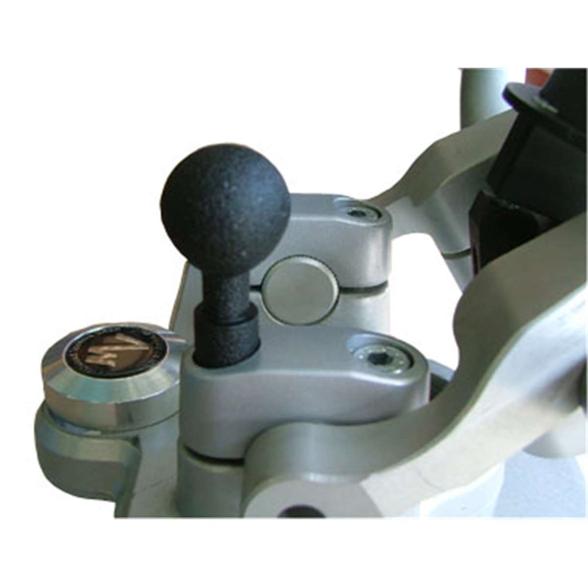 Durch den Halter wird eine M8 Lenkerbefestigungsschraube oder andere M8 Schraube ersetzt. Die Kugel ist aus kunststoff-beschichtetem Stahl und hat einen Durchmesser von 25,4 mm.
