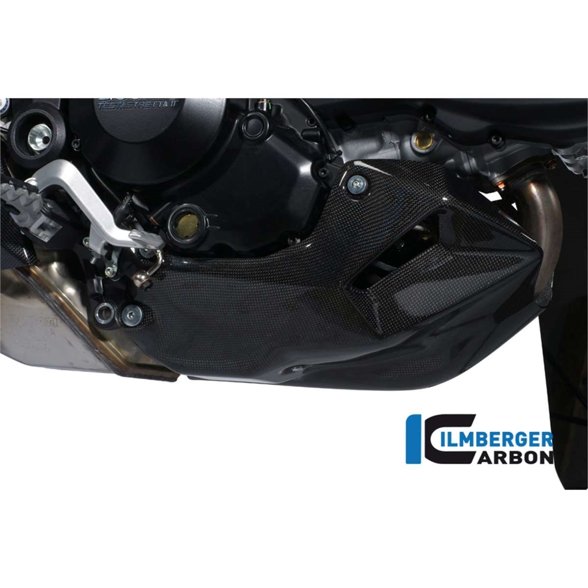 Der einteilige Motorspoiler in Carbon für die Ducati Multistrada 1200 ersetzt das originale Bauteil unter Verwendung der originalen Befestigungspunkte. Dieses einteilige Verkleidungsunterteil ist im unteren Bereich geschlossen gefertigt um die Verschmutzung des Motorrades bei schlechten Witterungsverhältnissen zu reduzieren. Im Vordergrund stehen Gewichtsersparnis (in der Regel Einsparung von ca. 70% im Vergleich zum originalen Bauteil) und höhere Steifigkeit.  Das Carbonteil wurde nach den neuesten Richtlinien im Autoklaven komplett aus Prepreg (siehe FAQ) Material gefertigt und im nächsten Schritt, wie bei uns üblich, zum Schutz gegen Umwelteinflüße mit einer klaren Kunststoffbeschichtung überzogen.