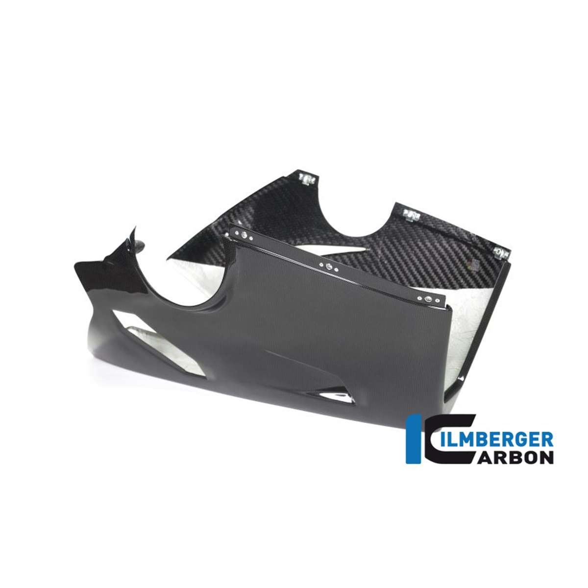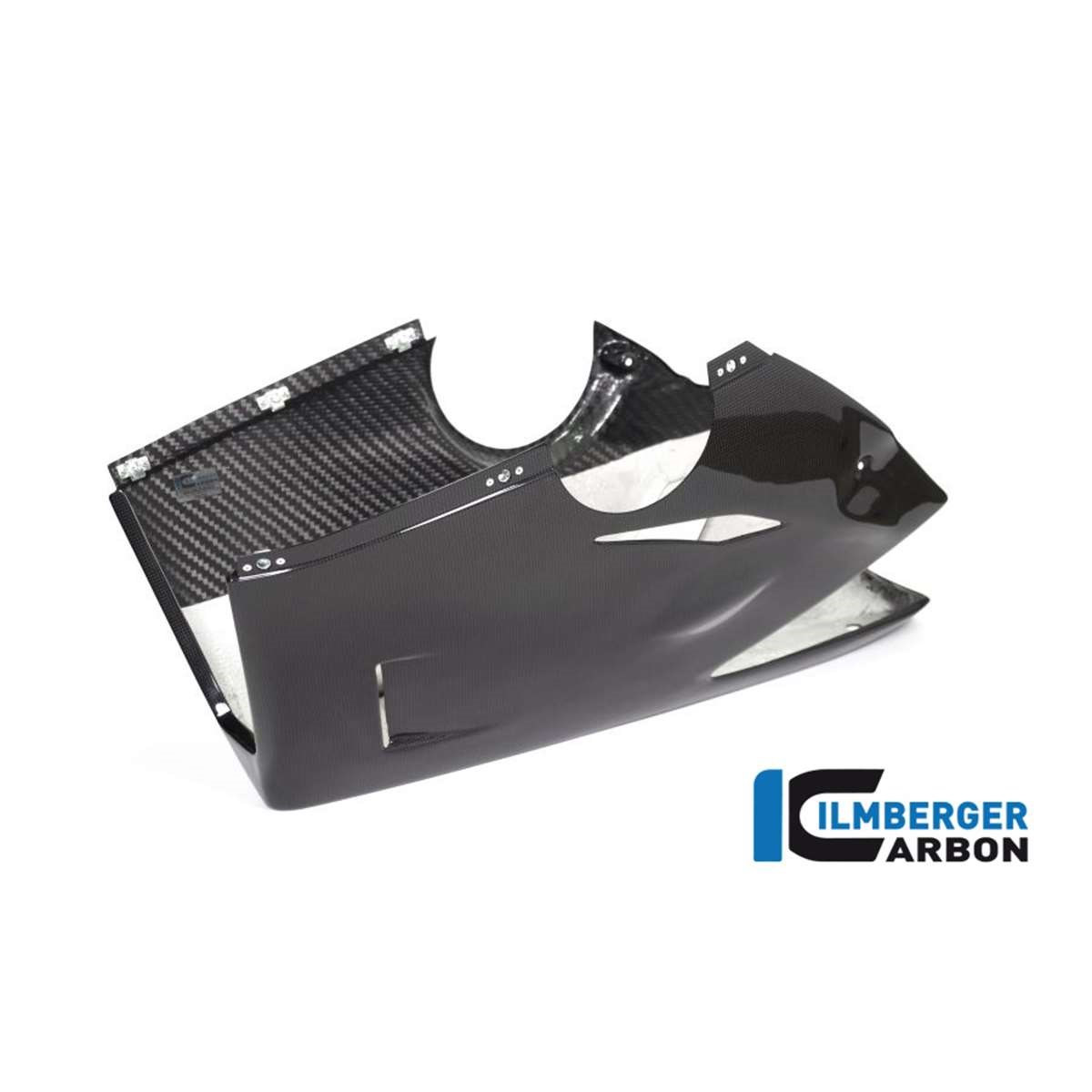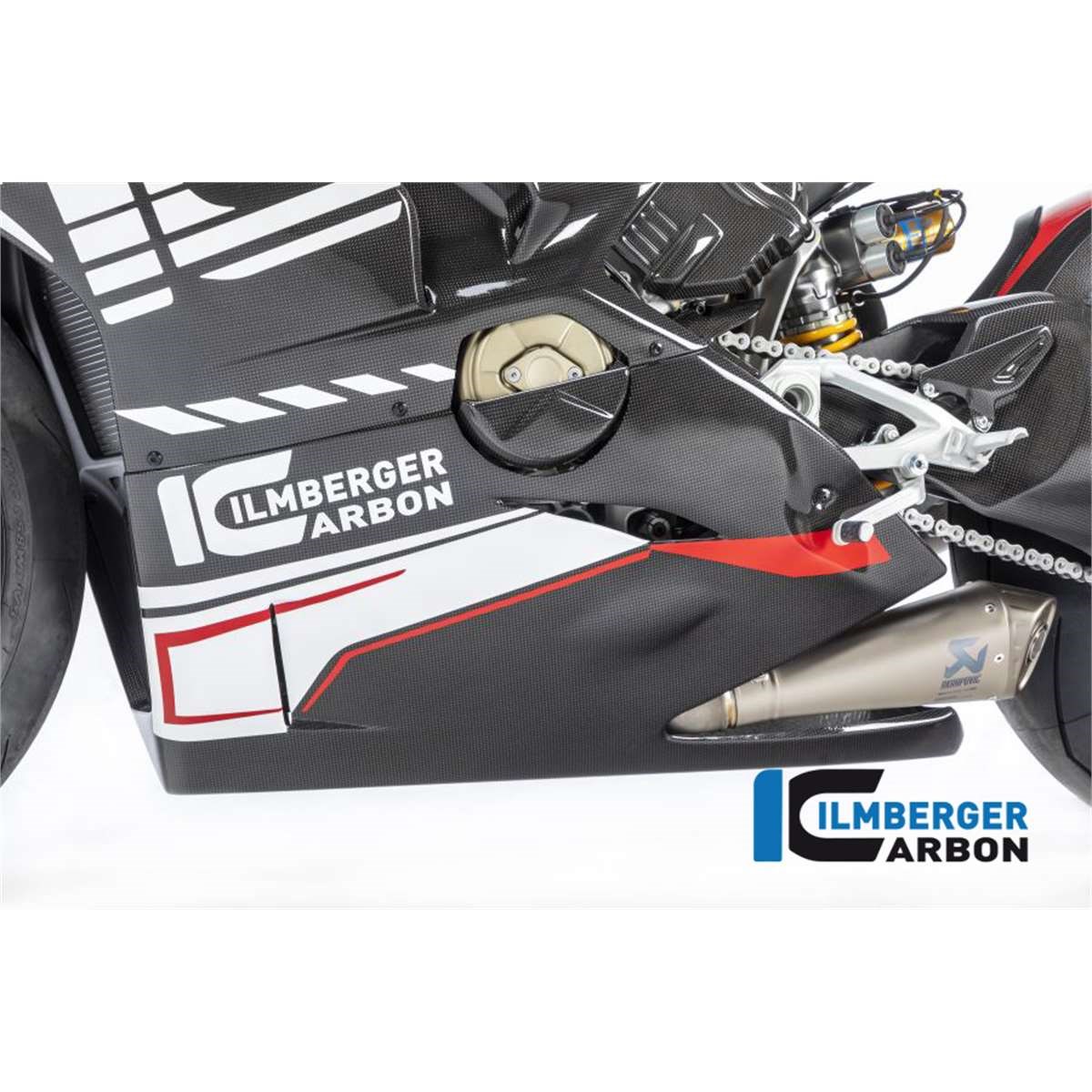 Das Verkleidungsunterteil in Carbon für die Ducati Panigale V4 / V4 S Racing ersetzt das originale Bauteil unter Verwendung der originalen Befestigungspunkte. Im Vordergrund stehen Gewichtsersparnis (in der Regel Einsparung von ca. 70% im Vergleich zum originalen Bauteil) und höhere Steifigkeit. Das Carbonteil wurde nach den neuesten Richtlinien im Autoklaven komplett aus Prepreg (siehe FAQ) Material gefertigt und im nächsten Schritt, wie bei uns üblich, zum Schutz gegen Umwelteinflüsse mit einer klaren Kunststoffbeschichtung überzogen.