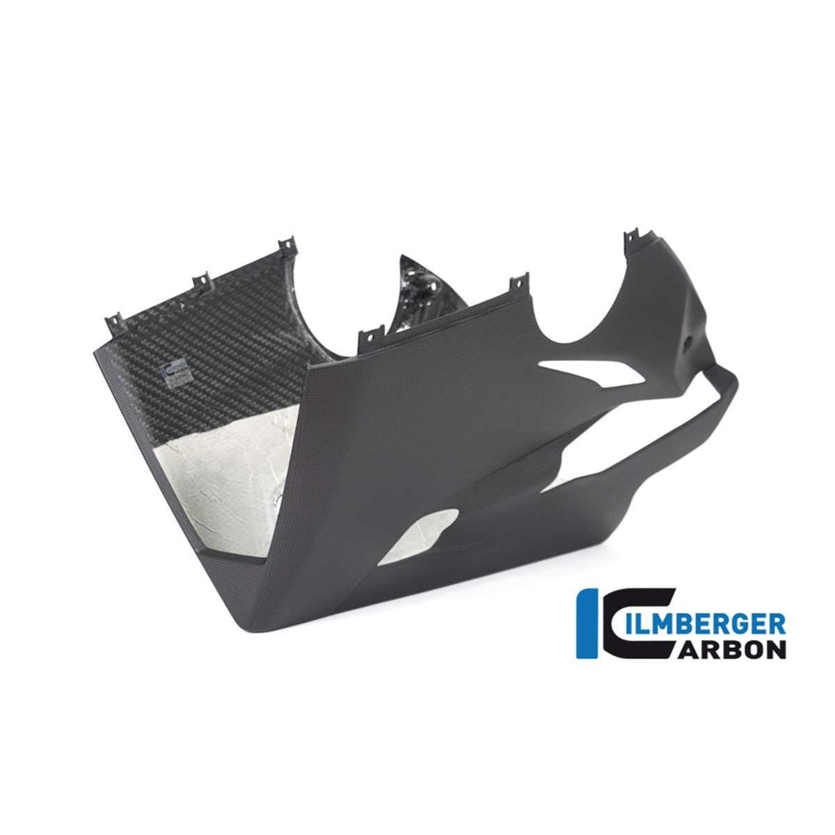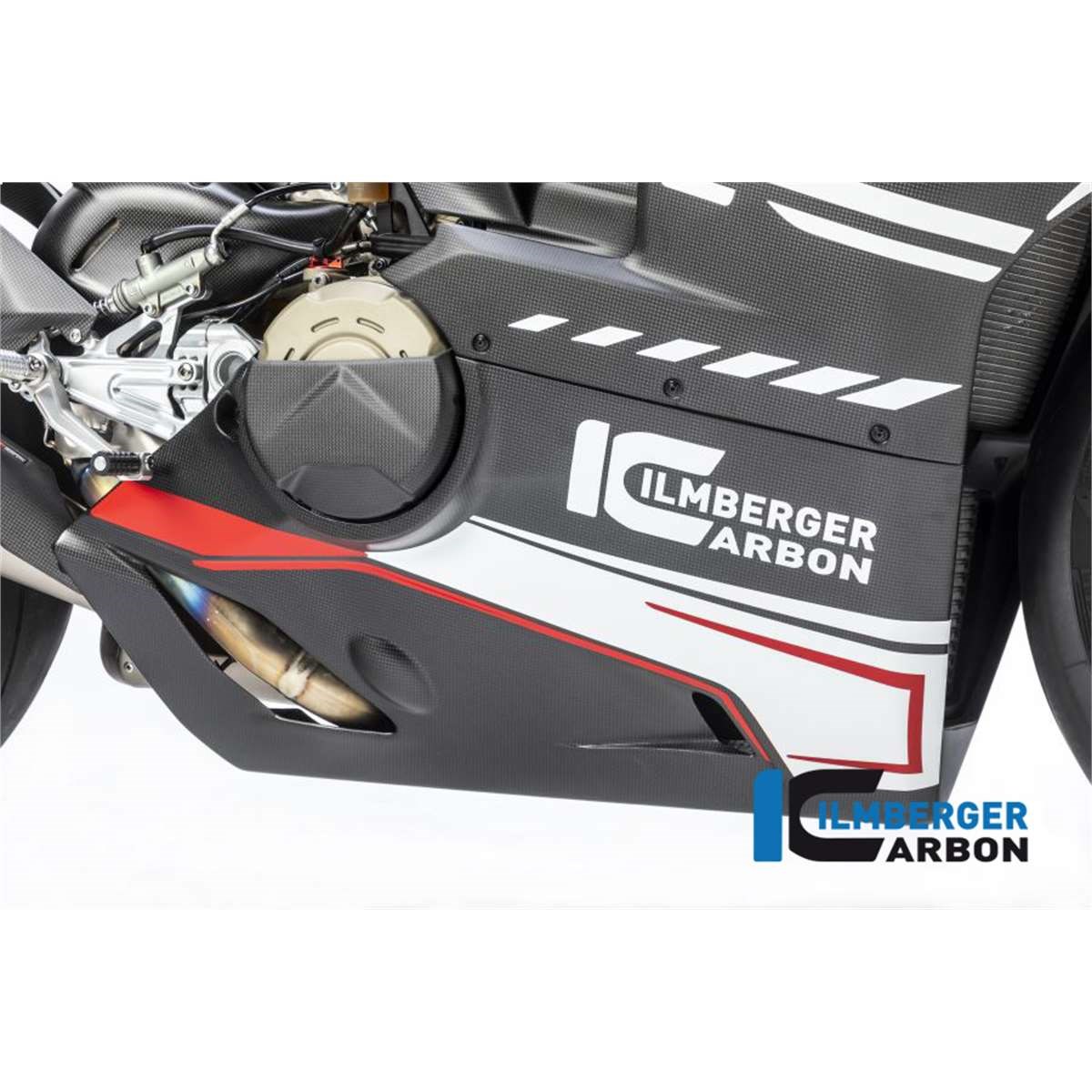 Das Verkleidungsunterteil in Carbon für die Ducati Panigale V4 / V4 S Racing ersetzt das originale Bauteil unter Verwendung der originalen Befestigungspunkte. Im Vordergrund stehen Gewichtsersparnis (in der Regel Einsparung von ca. 70% im Vergleich zum originalen Bauteil) und höhere Steifigkeit. Das Carbonteil wurde nach den neuesten Richtlinien im Autoklaven komplett aus Prepreg (siehe FAQ) Material gefertigt und im nächsten Schritt, wie bei uns üblich, zum Schutz gegen Umwelteinflüsse mit einer klaren Kunststoffbeschichtung überzogen.