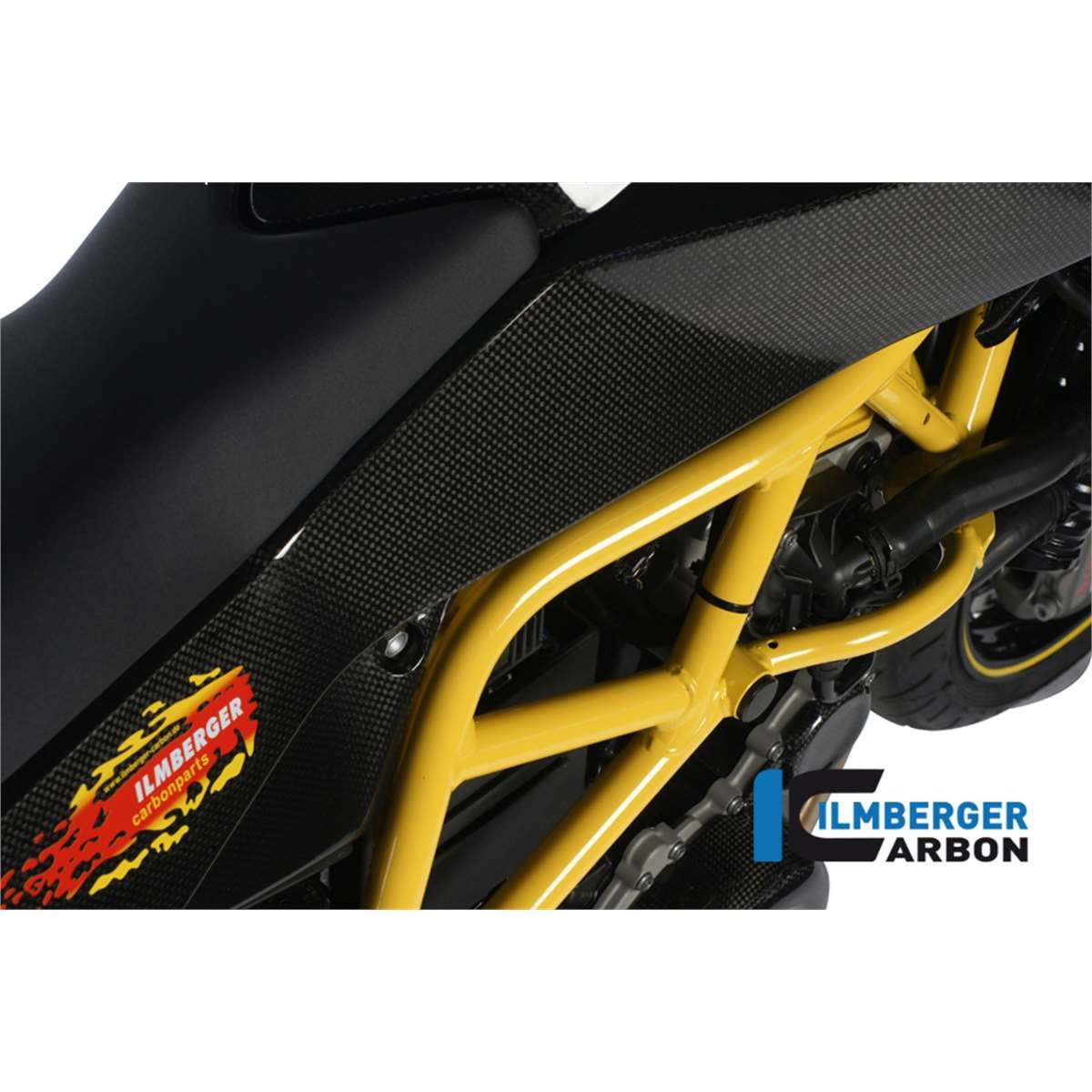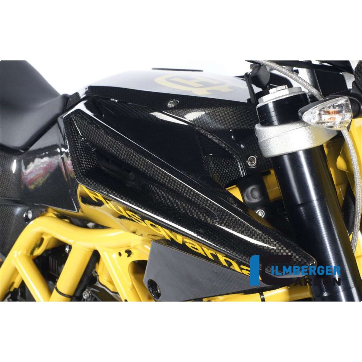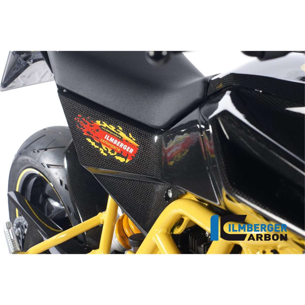 Das Verkleidungsseitenteil rechts in Carbon für die Husqvarna Nuda 900 und 900 R ersetzt das originale Bauteil unter Verwendung der originalen Befestigungspunkte. Im Vordergrund stehen Gewichtsersparnis (in der Regel Einsparung von ca. 70% im Vergleich zum originalen Bauteil) und höhere Steifigkeit.  Das Carbonteil wurde nach den neuesten Richtlinien im Autoklaven komplett aus Prepreg (siehe FAQ) Material gefertigt und im nächsten Schritt, wie bei uns üblich, zum Schutz gegen Umwelteinflüße mit einer klaren Kunststoffbeschichtung überzogen.