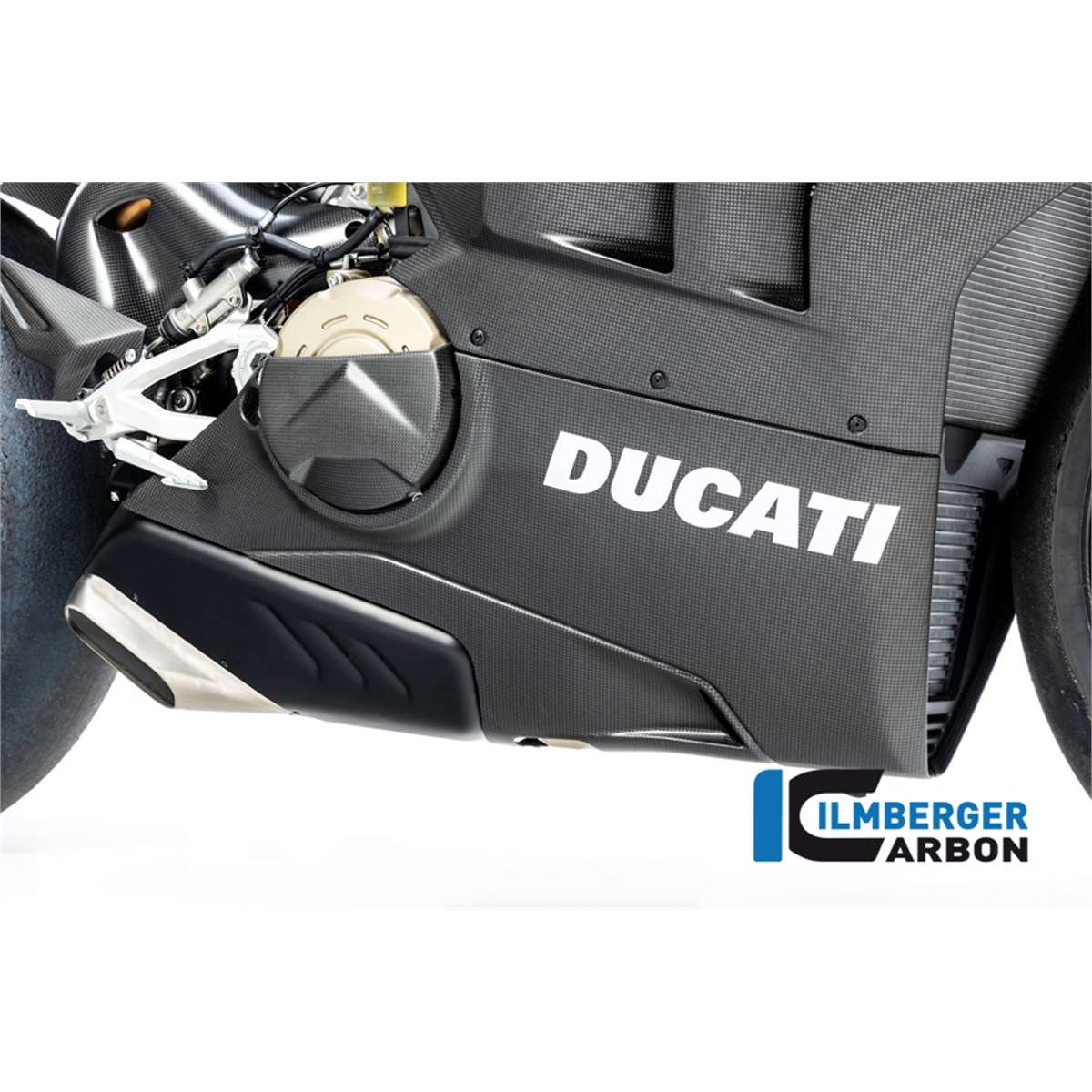 Das Verkleidungsunterteil rechts (matt) für die Ducati Panigale V4 / V4 S wird in matter Oberfläche ausgeliefert und passt damit hervorragend zu den, ebenfalls in mattem Carbon ausgelieferten, originalen Ducati Performance Teilen. Das  Ilmberger Carbon Verkleidungsseitenteil wird statt des serienmäßigen Plastikteils verbaut.  Das Ilmberger Bauteil wird ausschließlich an serienmäßigen Aufnahmepunkten montiert.