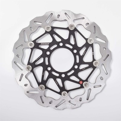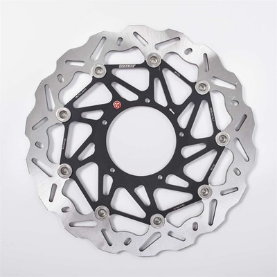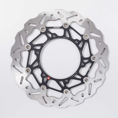 Bremsscheibe vollschwimmend mit Stahlaussenring im Wave Design, Innenring aus Aluminium.