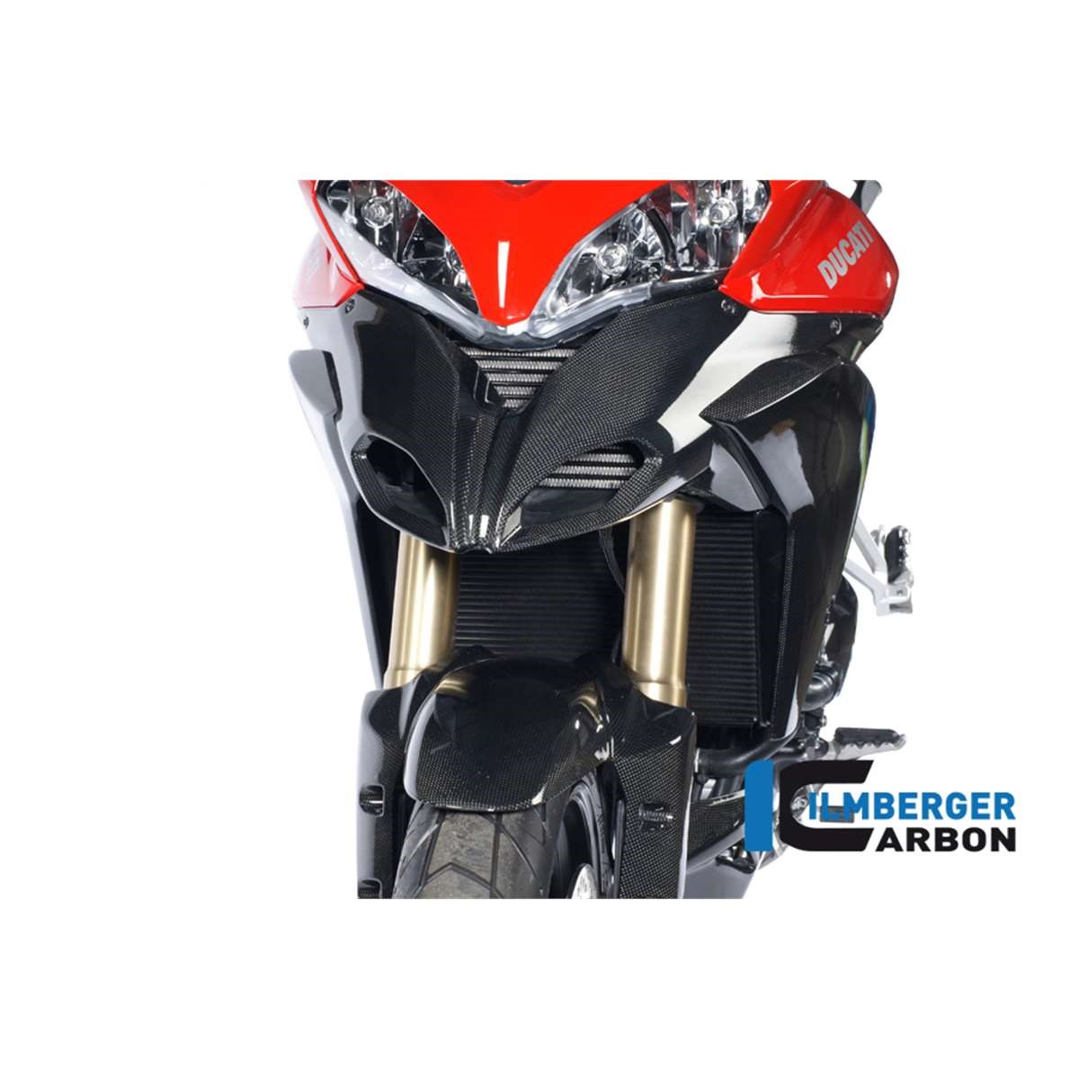 Die Lufteinlassverkleidung in Carbon für die Ducati Multistrada 1200 ersetzt das originale Bauteil unter Verwendung der originalen Befestigungspunkte. Im Vordergrund stehen Gewichtsersparnis (in der Regel Einsparung von ca. 70% im Vergleich zum originalen Bauteil) und höhere Steifigkeit.  Das Carbonteil wurde nach den neuesten Richtlinien im Autoklaven komplett aus Prepreg (siehe FAQ) Material gefertigt und im nächsten Schritt, wie bei uns üblich, zum Schutz gegen Umwelteinflüße mit einer klaren Kunststoffbeschichtung überzogen.