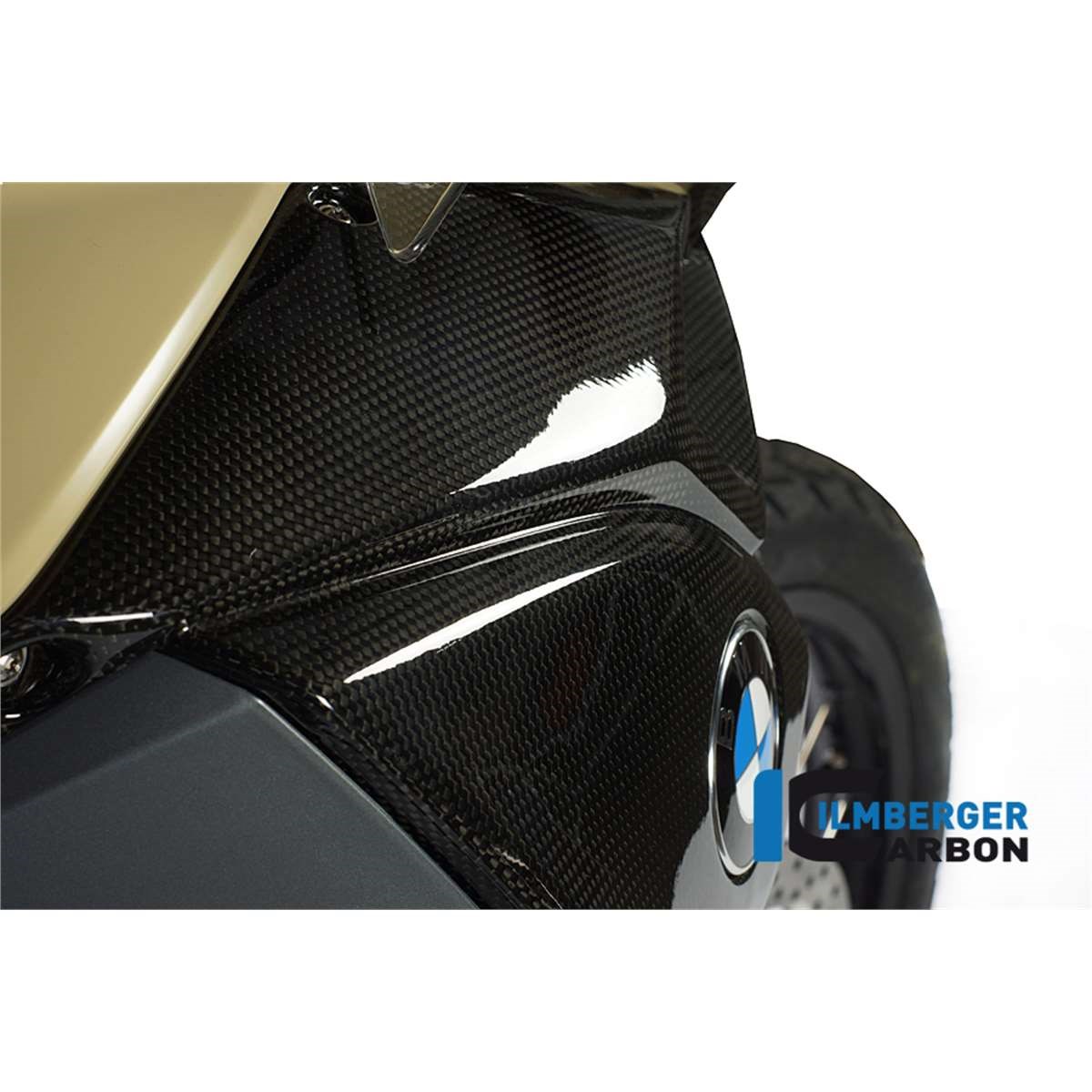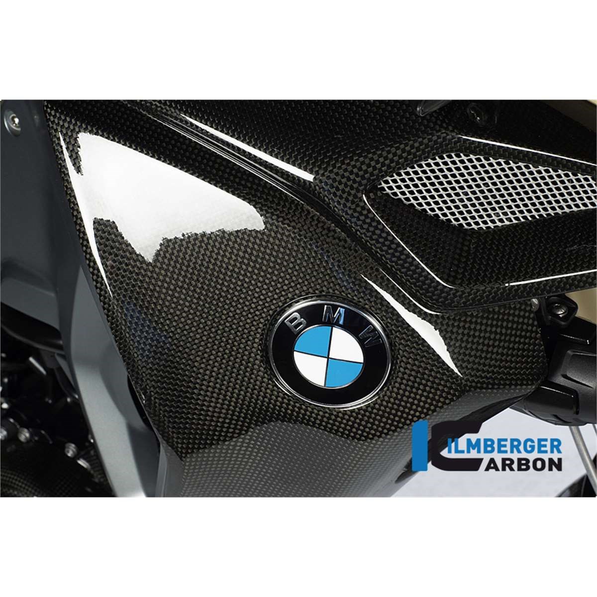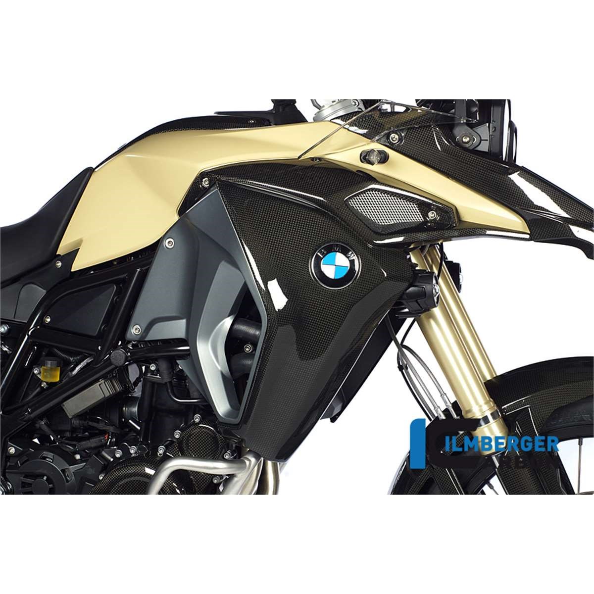 Die rechte Wasserkühlerabdeckung (zugleich Plakettenträger und Airboxeinlassverkleidung) in Carbon für die BMW F 800 GS Adventure  ersetzt das originale Bauteil unter Verwendung der originalen Befestigungspunkte. Im Vordergrund stehen Gewichtsersparnis (in der Regel Einsparung von ca. 70% im Vergleich zum originalen Bauteil) und höhere Steifigkeit.  Das Carbonteil wurde nach den neuesten Richtlinien im Autoklaven komplett aus Prepreg (siehe FAQ) Material gefertigt und im nächsten Schritt, wie bei uns üblich, zum Schutz gegen Umwelteinflüße mit einer klaren Kunststoffbeschichtung überzogen.