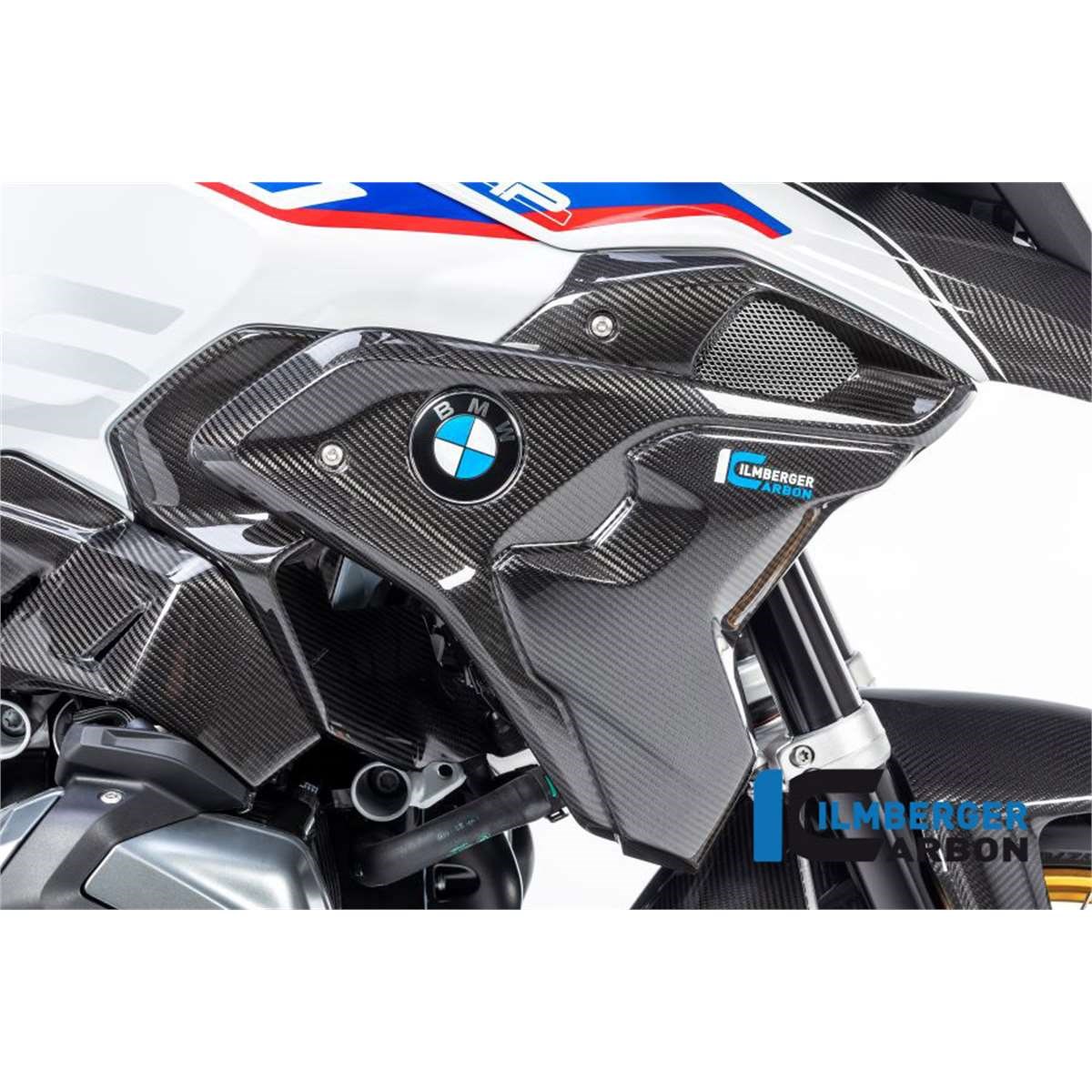 Der rechte Windkanal inkl. Flap für die BMW R 1250 GS ab Baujahr 2019 ersetzt das originale Bauteil unter Verwendung der originalen Befestigungspunkte. Im Vordergrund stehen Gewichtsersparnis (in der Regel Einsparung von ca. 70% im Vergleich zum originalen Bauteil) und höhere Steifigkeit.