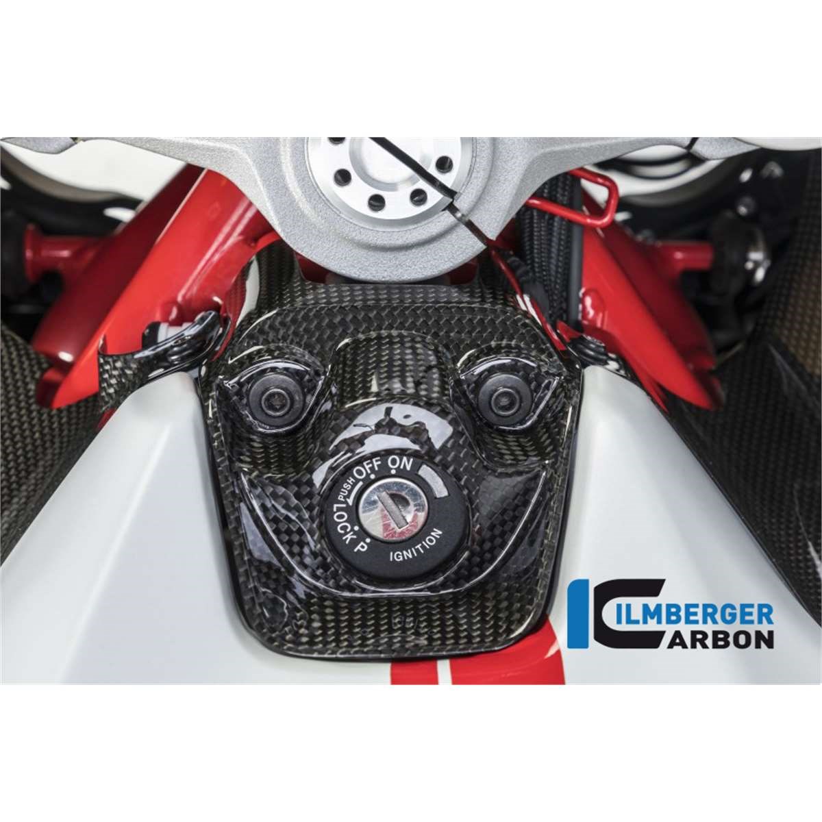 Die Zündschlossabdeckung in Carbon für die Ducati Supersport 939 ersetzt das originale Bauteil unter Verwendung der originalen Befestigungspunkte. Im Vordergrund stehen Gewichtsersparnis (in der Regel Einsparung von ca. 70% im Vergleich zum originalen Bauteil) und höhere Steifigkeit.  Das Carbonteil wurde nach den neuesten Richtlinien im Autoklaven komplett aus Prepreg (siehe FAQ) Material gefertigt und im nächsten Schritt, wie bei uns üblich, zum Schutz gegen Umwelteinflüße mit einer klaren Kunststoffbeschichtung überzogen.