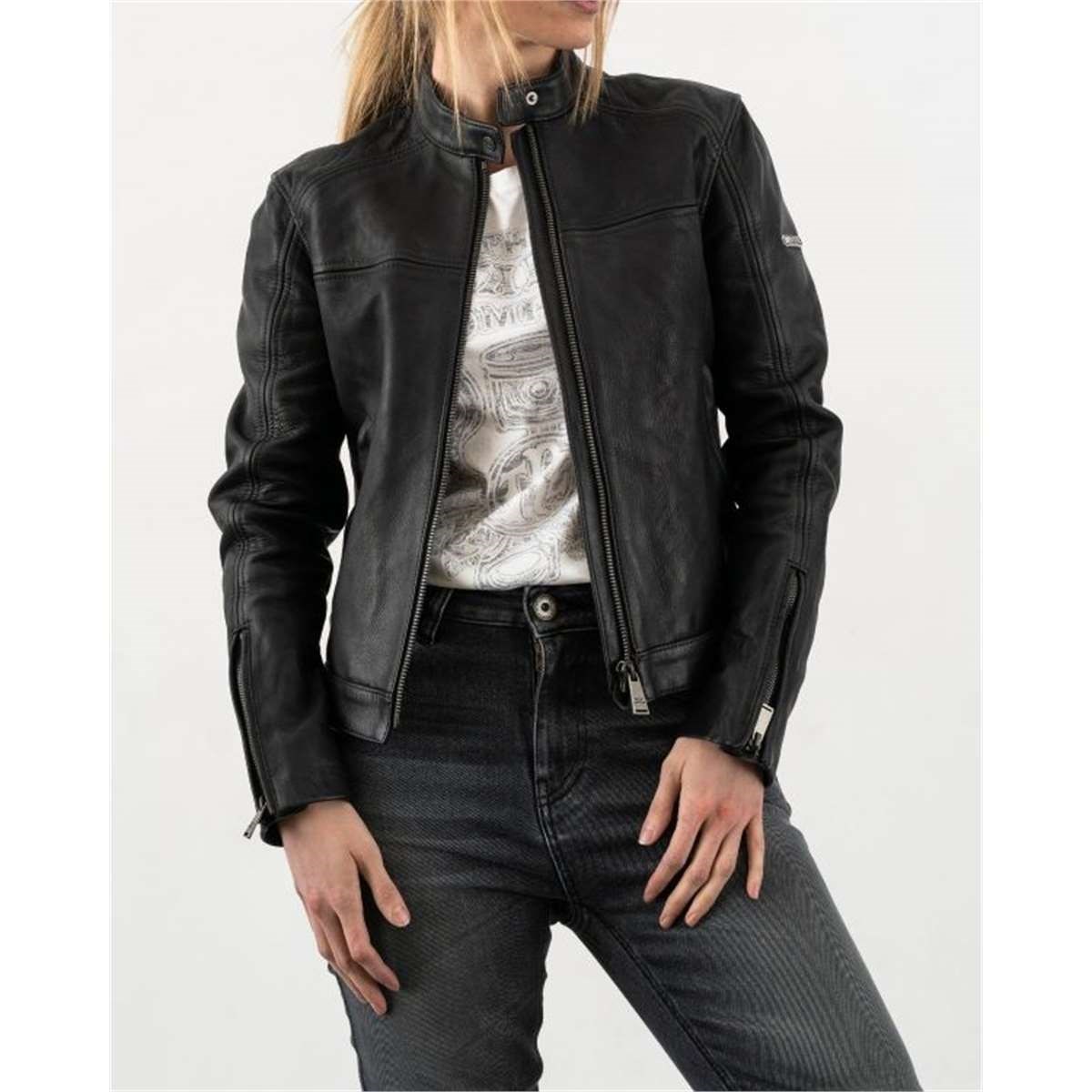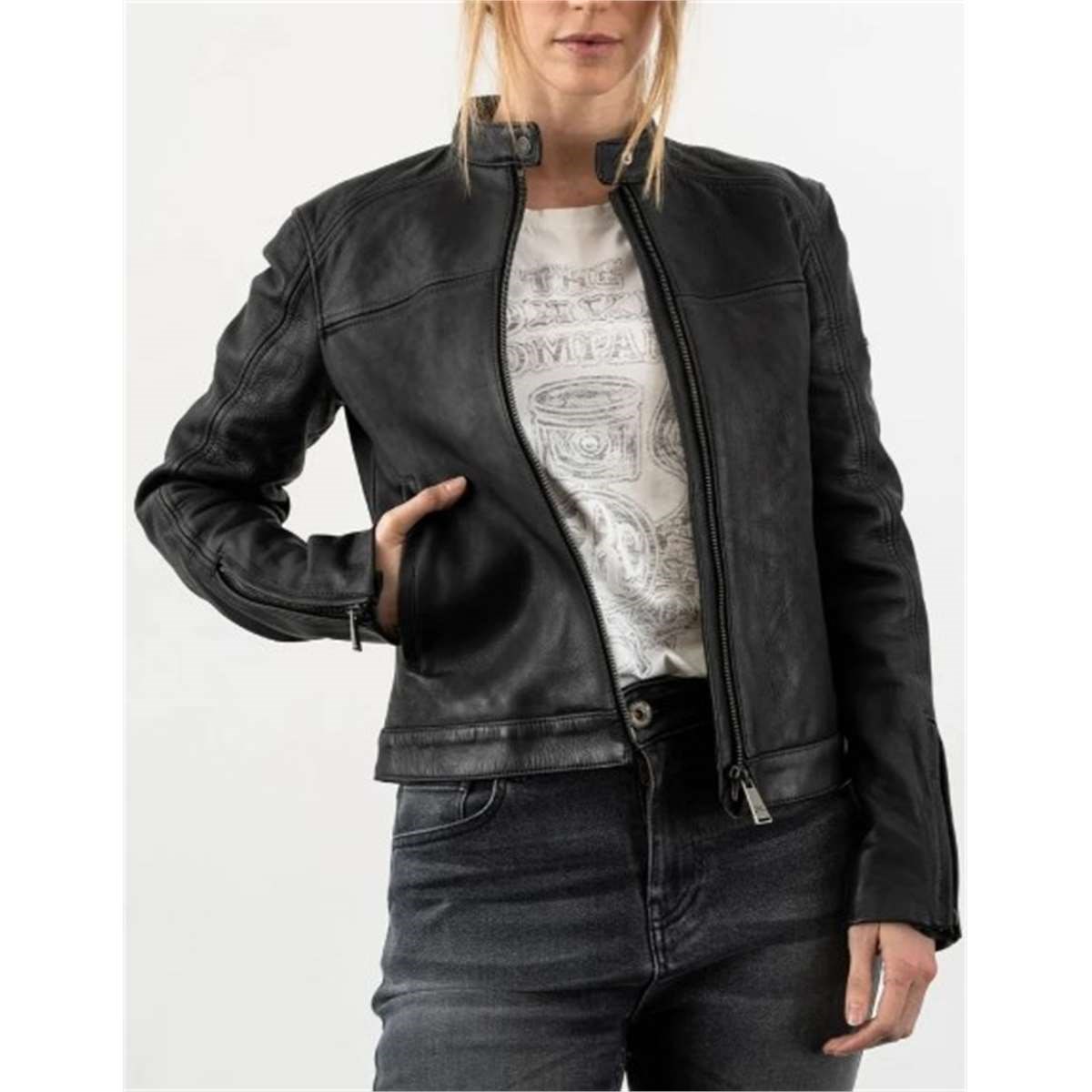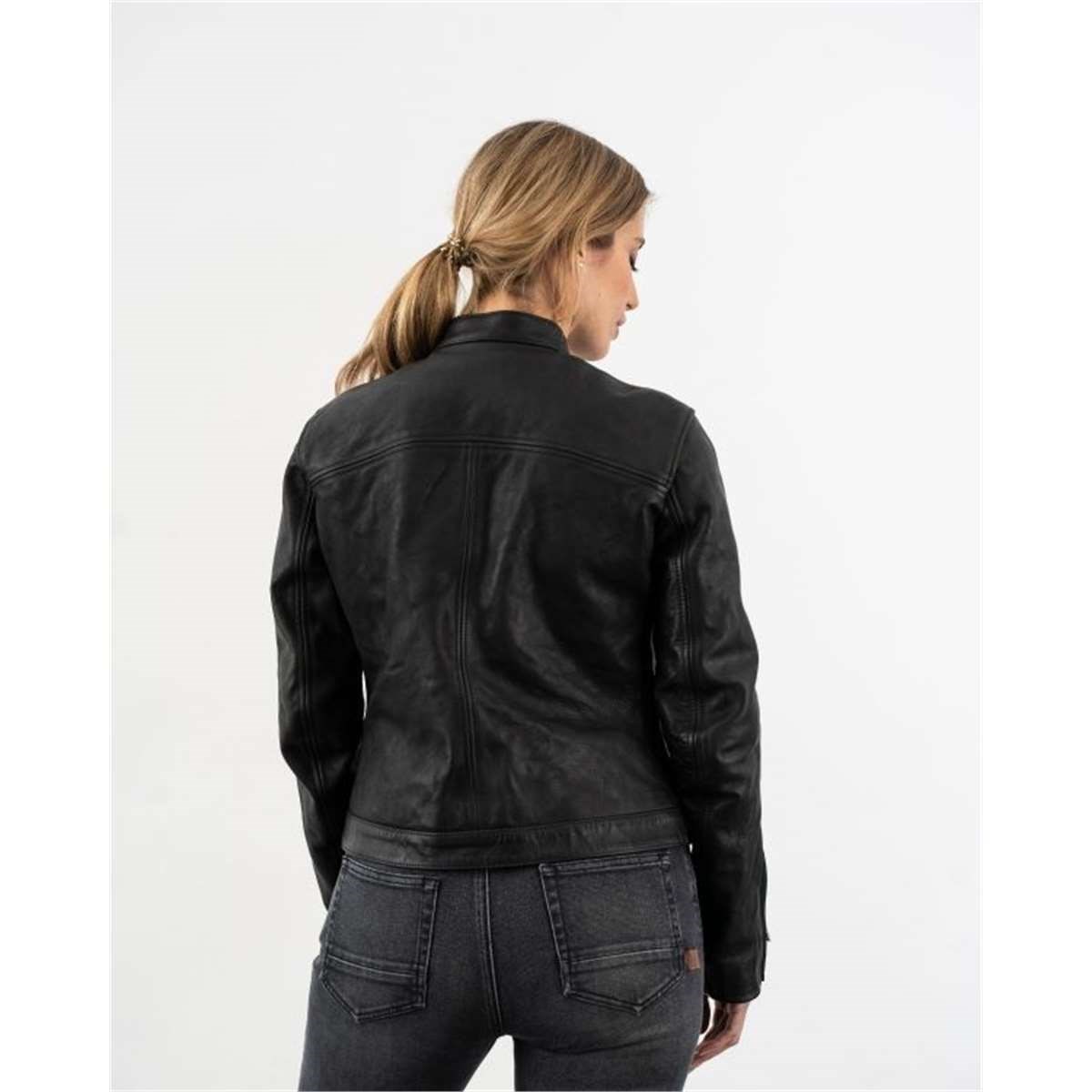 Aufbau: Hochabriebfeste Damen Lederjacke mit D3O® Ghost Protektoren und Revers Kragen