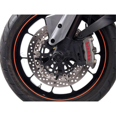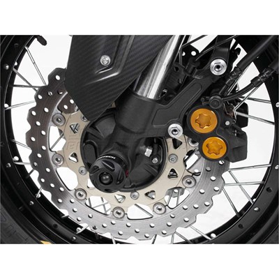Sturzpads aus abriebfestem Kunststoff zum Schutz der Gabel. Mit ihrem formschönen Design integrieren sich die Pads vollständig in das Erscheinungsbild des Motorrades. Einfache Montage durch mitgeliefertes Befestigungsmaterial.
