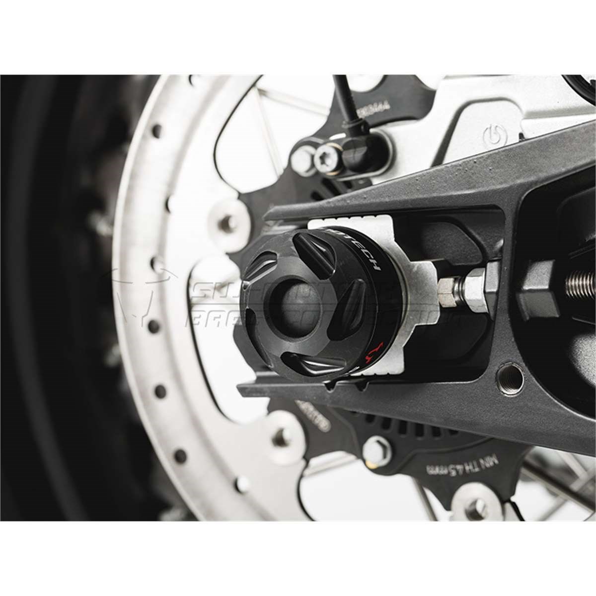 Sturzpads aus abriebfestem Kunststoff zum Schutz der Schwinge. Mit ihrem formschönen Design integrieren sich die Pads vollständig in das Erscheinungsbild des Motorrades. Einfache Montage durch mitgeliefertes Befestigungsmaterial.