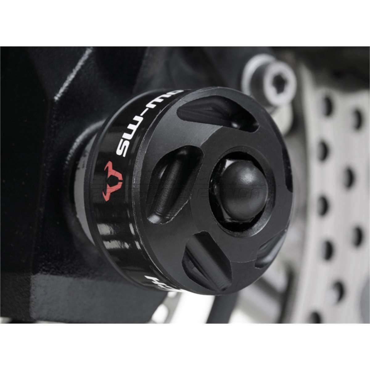 Sturzpads aus abriebfestem Kunststoff zum Schutz der Gabel. Mit ihrem formschönen Design integrieren sich die Pads vollständig in das Erscheinungsbild des Motorrades. Einfache Montage durch mitgeliefertes Befestigungsmaterial.