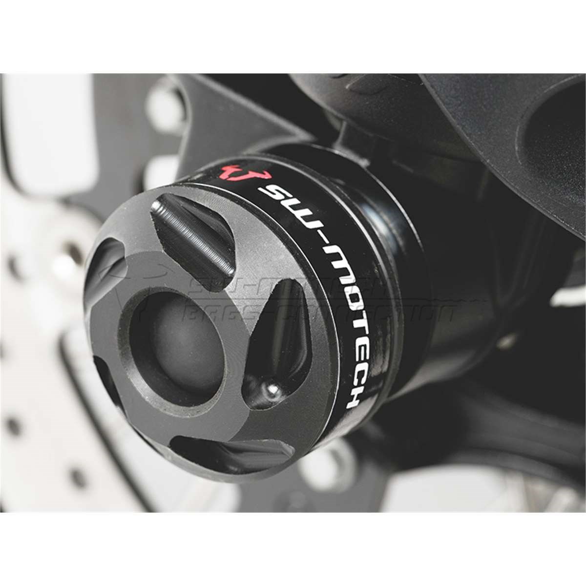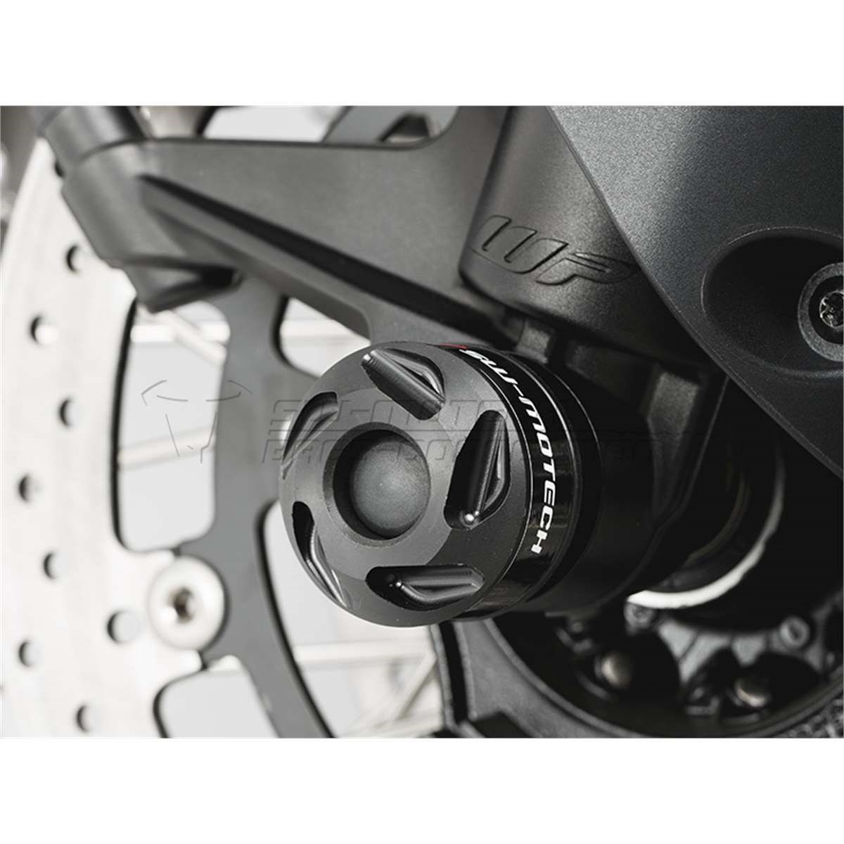 Sturzpads aus abriebfestem Kunststoff zum Schutz der Gabel. Mit ihrem formschönen Design integrieren sich die Pads vollständig in das Erscheinungsbild des Motorrades. Einfache Montage durch mitgeliefertes Befestigungsmaterial.