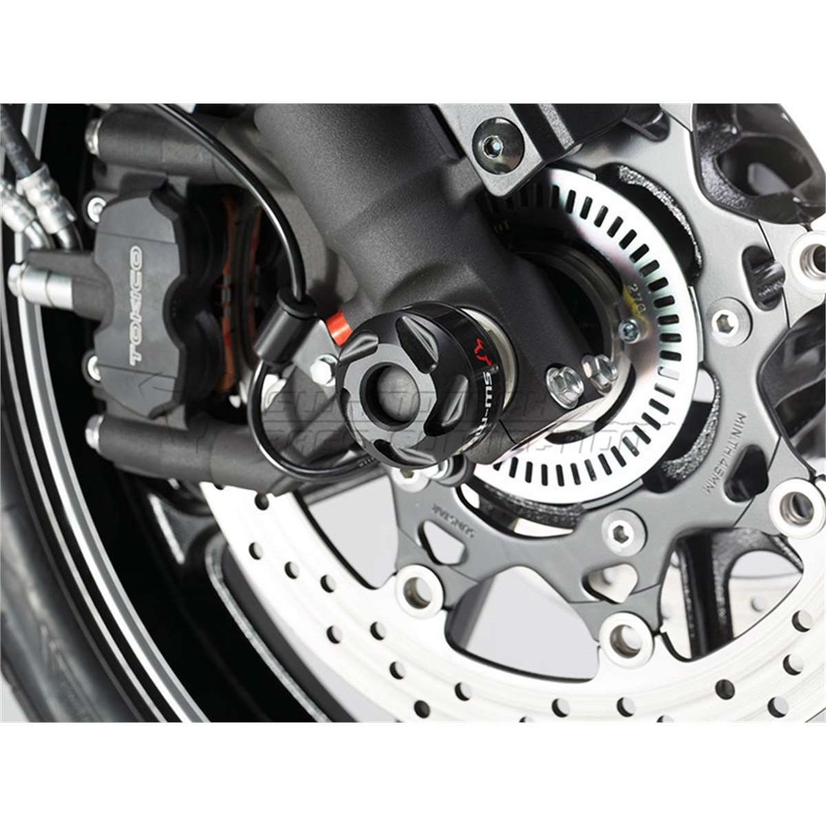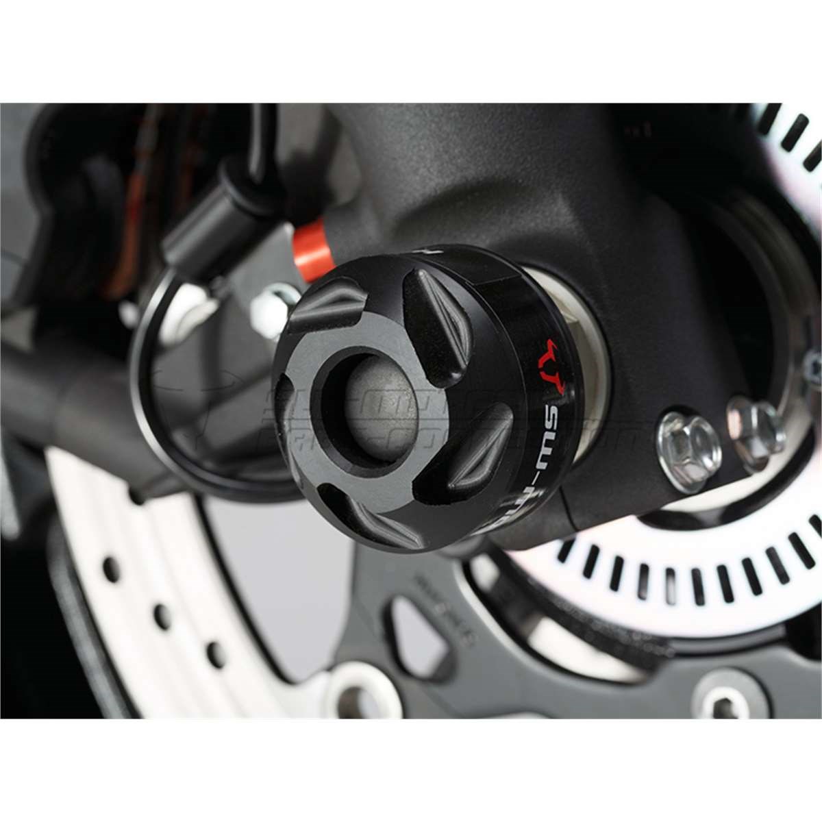 Sturzpads aus abriebfestem Kunststoff zum Schutz der Gabel. Mit ihrem formschönen Design integrieren sich die Pads vollständig in das Erscheinungsbild des Motorrades. Einfache Montage durch mitgeliefertes Befestigungsmaterial.