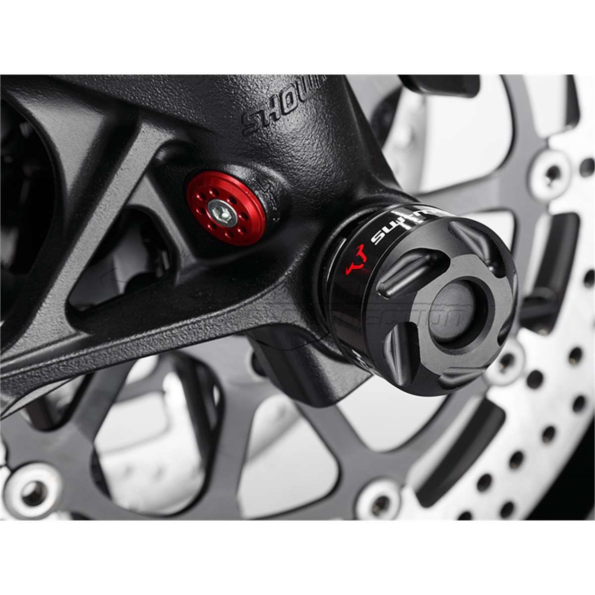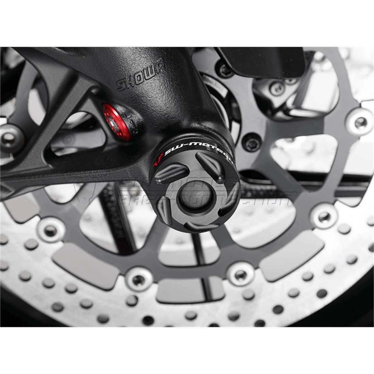 Sturzpads aus abriebfestem Kunststoff zum Schutz der Gabel. Mit ihrem formschönen Design integrieren sich die Pads vollständig in das Erscheinungsbild des Motorrades. Einfache Montage durch mitgeliefertes Befestigungsmaterial.