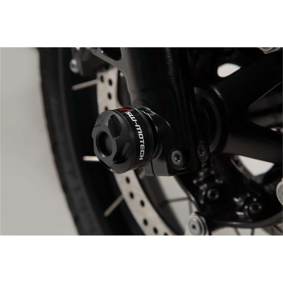 Sturzpads aus abriebfestem Kunststoff zum Schutz der Gabel. Mit ihrem formschönen Design integrieren sich die Pads vollständig in das Erscheinungsbild des Motorrades. Einfache Montage durch mitgeliefertes Befestigungsmaterial.