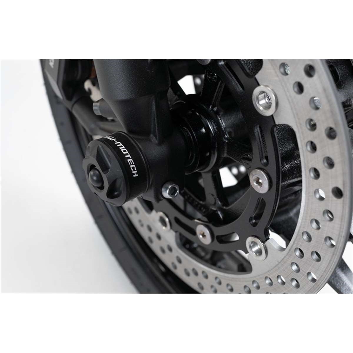 Sturzpads aus abriebfestem Kunststoff zum Schutz der Gabel. Mit ihrem formschönen Design integrieren sich die Pads vollständig in das Erscheinungsbild des Motorrades. Einfache Montage durch mitgeliefertes Befestigungsmaterial.