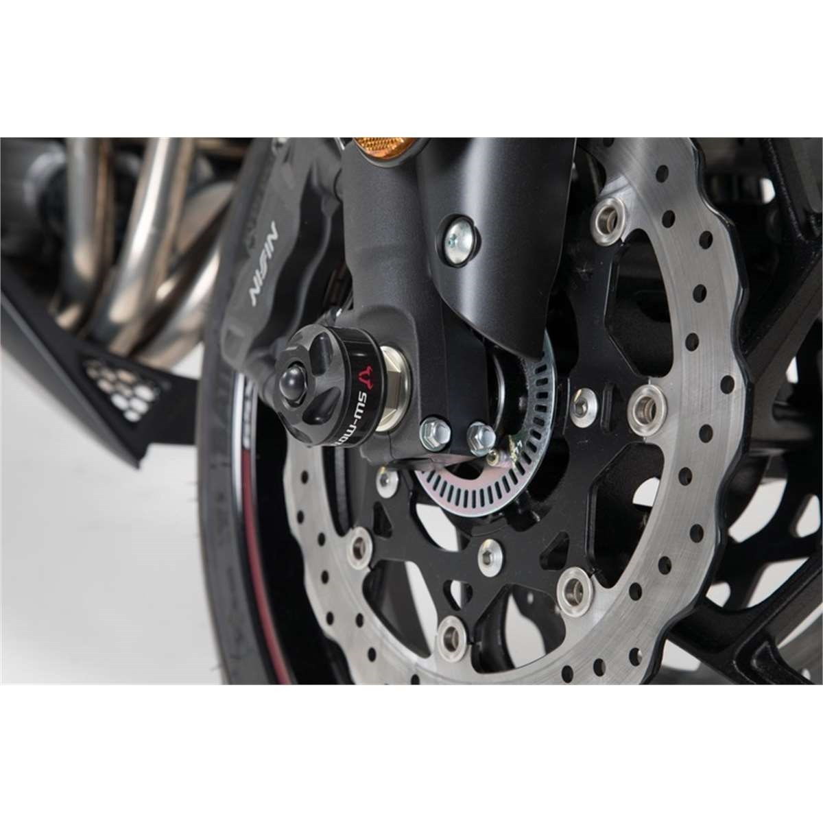 Sturzpads aus abriebfestem Kunststoff zum Schutz der Gabel. Mit ihrem formschönen Design integrieren sich die Pads vollständig in das Erscheinungsbild des Motorrades. Einfache Montage durch mitgeliefertes Befestigungsmaterial.