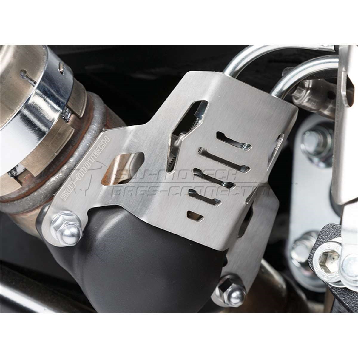 Der kompakte Staubklappenschutz aus gebürstetem Aluminium schützt die Original-Stauklappe des Motorrads vor Steinschlag und Stiefelkontakt. Der gravierte Protektor lässt sich mit wenigen Handgriffen am Motorrad anbringen.