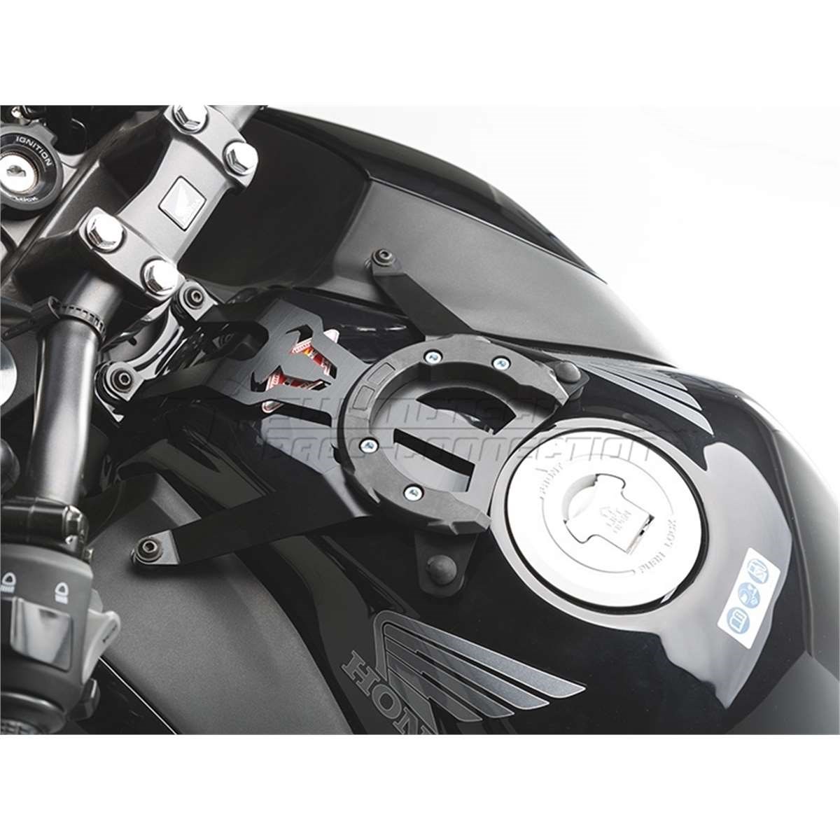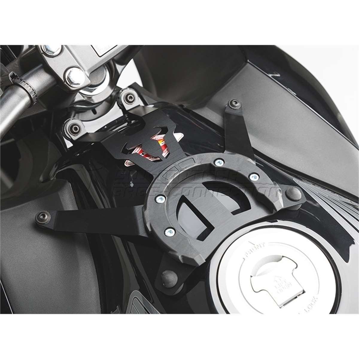 Neu überarbeiteter Quick-Lock Tankring in schwarz, für die gewohnt schnelle Montage und Demontage des Tankrucksackes.