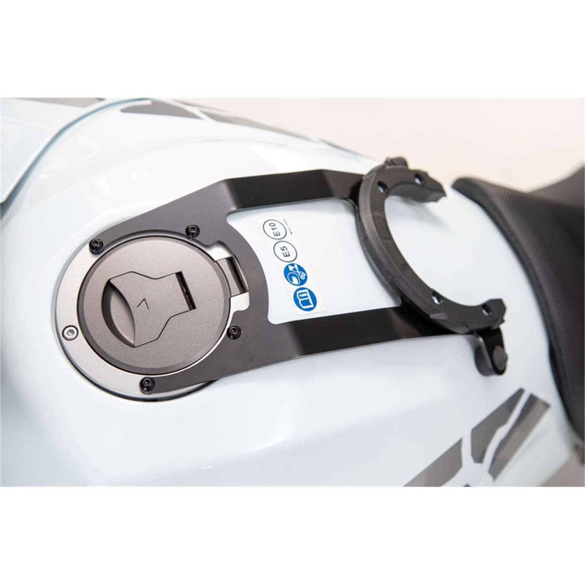 Neu überarbeiteter Quick-Lock Tankring in schwarz, für die gewohnt schnelle Montage und Demontage des Tankrucksackes.