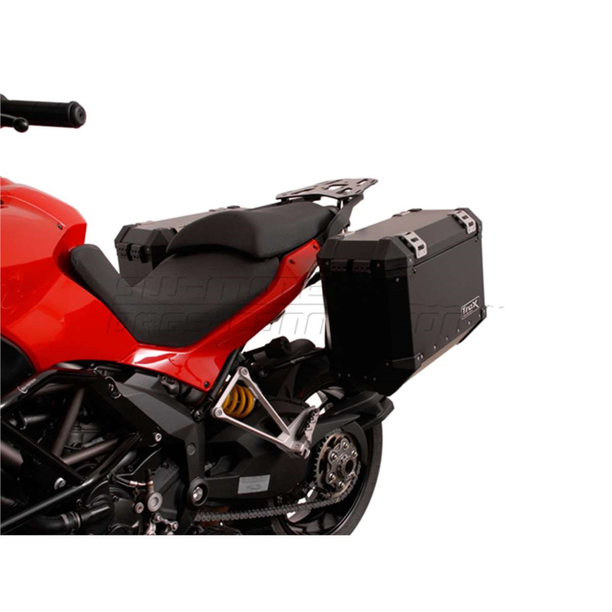 • QUICK-LOCK Kofferträger sind als Paar zur Befestigung von Seitenkoffern verwendbar. Eine zusätzliche Befestigung von ALU-RACK und QUICK-LOCK Adapterplatte ermöglicht die Kombination von Topcase und Seitenkoffern.