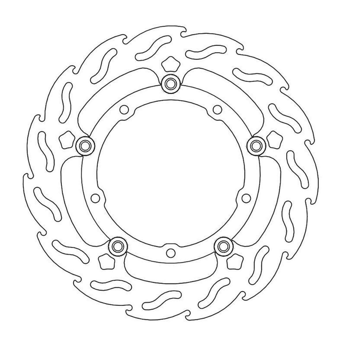 Die Moto-Master Bremsscheibe ist exakt auf Ihr Motorrad zugeschnitten und kann einfach durch die originale Scheibe ersetzt werden. Sie ist nicht nur ein optischer Hingucker sonder verbessert auch gegenüber der Originalscheibe die Brems-Performance. Die Scheiben sind aus einer hochwertigen Chrom-Molybdän-Legierung hergestellt, welche eine hervorragende Bremsleistung und perfektes Ansprechverhalten garantiert. Das spezielle Flame Design sorgt für die optimale Kühlung und Reinigung des Bremsbelages. Die Moto-Master Bremsscheibe kann mit allen Bremsbelägen verwendet werden wie: Sinterbronze, Kevlar und Keramik Karbon.