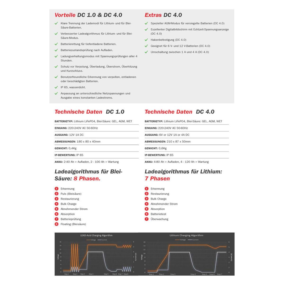 Diese neue Serie von elektronischen Batterieladegeräten wurde zum Laden von allen Bleibatterietypen konzipiert, von den traditionellen Batterien bis zu den Batterien der jüngsten Generation und für 12 V-Lithium-Ionen-Batterien mit LIFEPO4-Technologie. Diese Batterieladegeräte sind insbesondre für den täglichen Einsatz als unerlässliches Arbeitsgerät sowie für die langfristige Ladeerhaltung geeignet.