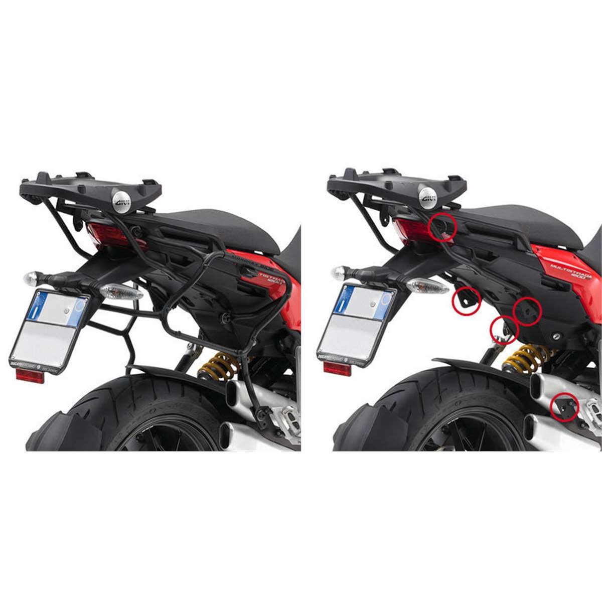 Mit Schnellverschluss und abschliessbar! Das neue Befestigungssystem PLXRapid fitting erlaubt eine einfache und schnelle Montage / Demontage des Trägers auf dem Motorrad. Die Träger, die über dieses neue System verfügen, heissen PLXR und besitzen Schnellverschluss-Schrauben, die an den unauffälligen Haupthalterungen befestigt werden. Bei der Demontage des Trägers müssen nur die spezifischen Schrauben mit Hilfe des personalisierten GIVI-Schlüssels (im Lieferumfang enthalten) aufgedreht werden. In wenigen Sekunden ist der Umbau geschafft und der optische Originalzustand wiederhergestellt. Für eine grössere Sicherheit / Diebstahlschutz sind alle PLXR mit einer Vorrichtung für ein Hängeschloss auf der linken und rechten Seite ausgestattet.Für dieses Trägersystem können nur die V35,V37 Monokey Koffer verwendet werden.