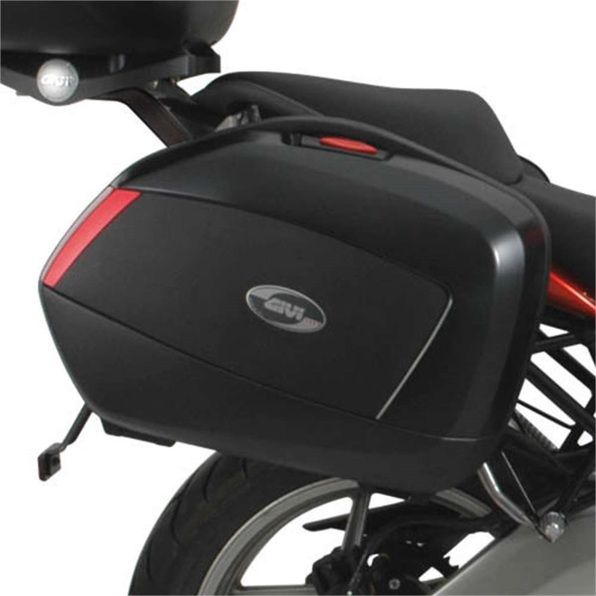 Die neuen Monokey® Side Seitenkoffer werden am Fahrzeug durch eine neue Entwicklung von typenspezifischen Stahlrohr-Seitenkofferträgern, PLX genannt, befestigt. Die Befestigungshaken des Koffers werden am Seitenkofferträger einfach angehackt und erlauben eine sichere Befestigung. Das essentielle Design stört nicht die Formgebung Ihres Fahrzeuges und die Montage des Seitenkoffer-Trägers erfolgt schnell und einfach in allen Montage/Demontage Phasen. Für dieses Trägersystem können nur die V35,V37 und K33 Monokey Koffer verwendet werden.