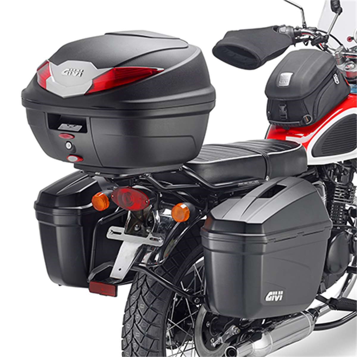 Durch ein raffiniertes Stahlrohrträgersystem können zwei Koffermodelle der MONOKEY-Serie einfach montiert werden. Ausserdem bietet dieses Seitenkofferträgersystem jederzeit die Möglichkeit, es mit einem Trägersystem für ein Topcase zu erweitern. V35 Koffer sind nicht mit diesem Trägersystem kompatibel.