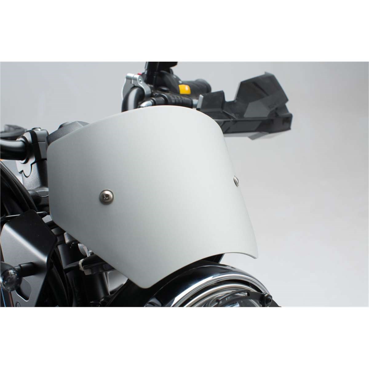 Das Windschild aus gebürstetem Aluminium verleiht jedem Motorrad eine individuelle Note - besonders in Kombination mit weiterem Zubehör wie dem Kotflügel-Kit oder den Mini-Blinkern.