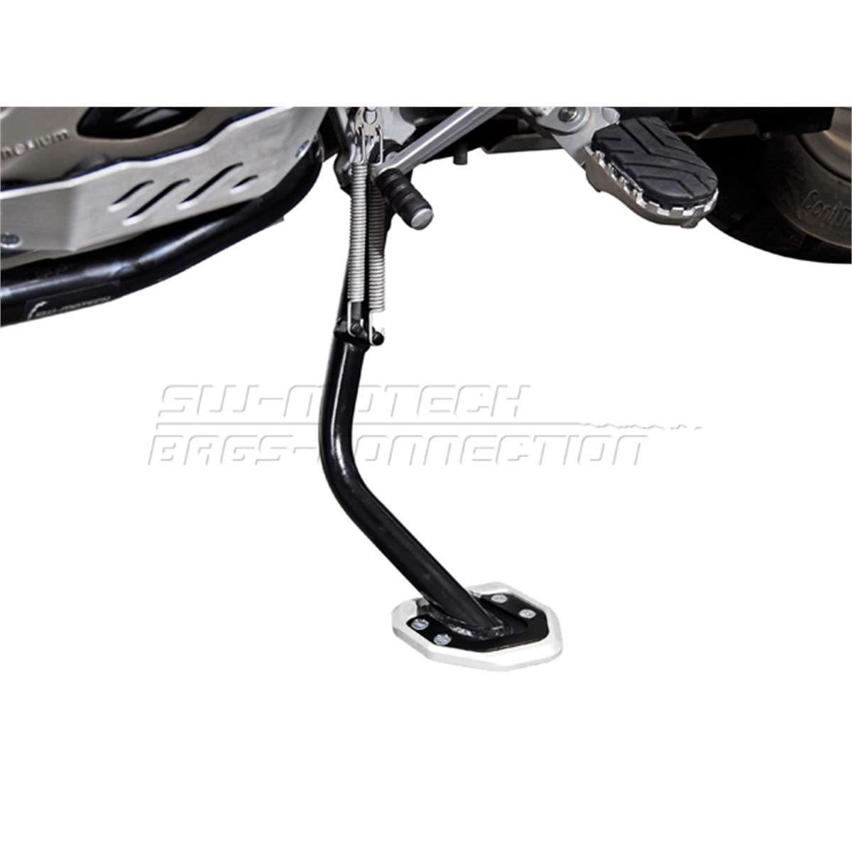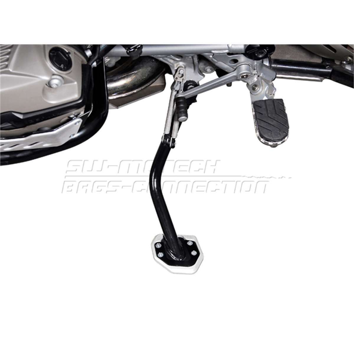Die formschöne Fussverbreiterung ist aus hochfester Aluminium-Legierung CNC-gefrässt. Dank der grosszügigen Auflagefläche wird ein Versinken auf weichem Untergrund verhindert. Der Verbreiterungsfuss ist silber eloxiert, das obere Anbaublech schwarz pulverbeschichtet.