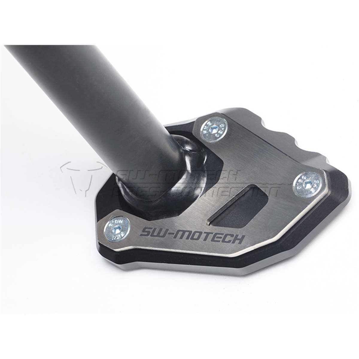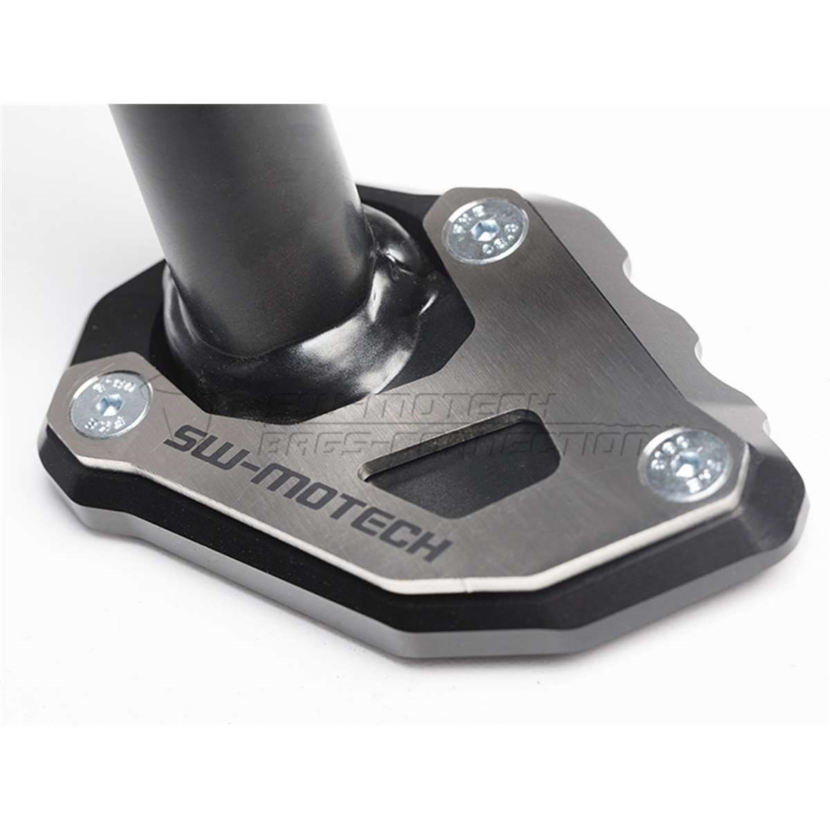 Die formschöne Fussverbreiterung ist aus hochfester Aluminium-Legierung CNC-gefrässt. Dank der grosszügigen Auflagefläche wird ein Versinken auf weichem Untergrund verhindert. Der Verbreiterungsfuss ist silber eloxiert, das obere Anbaublech schwarz pulverbeschichtet.