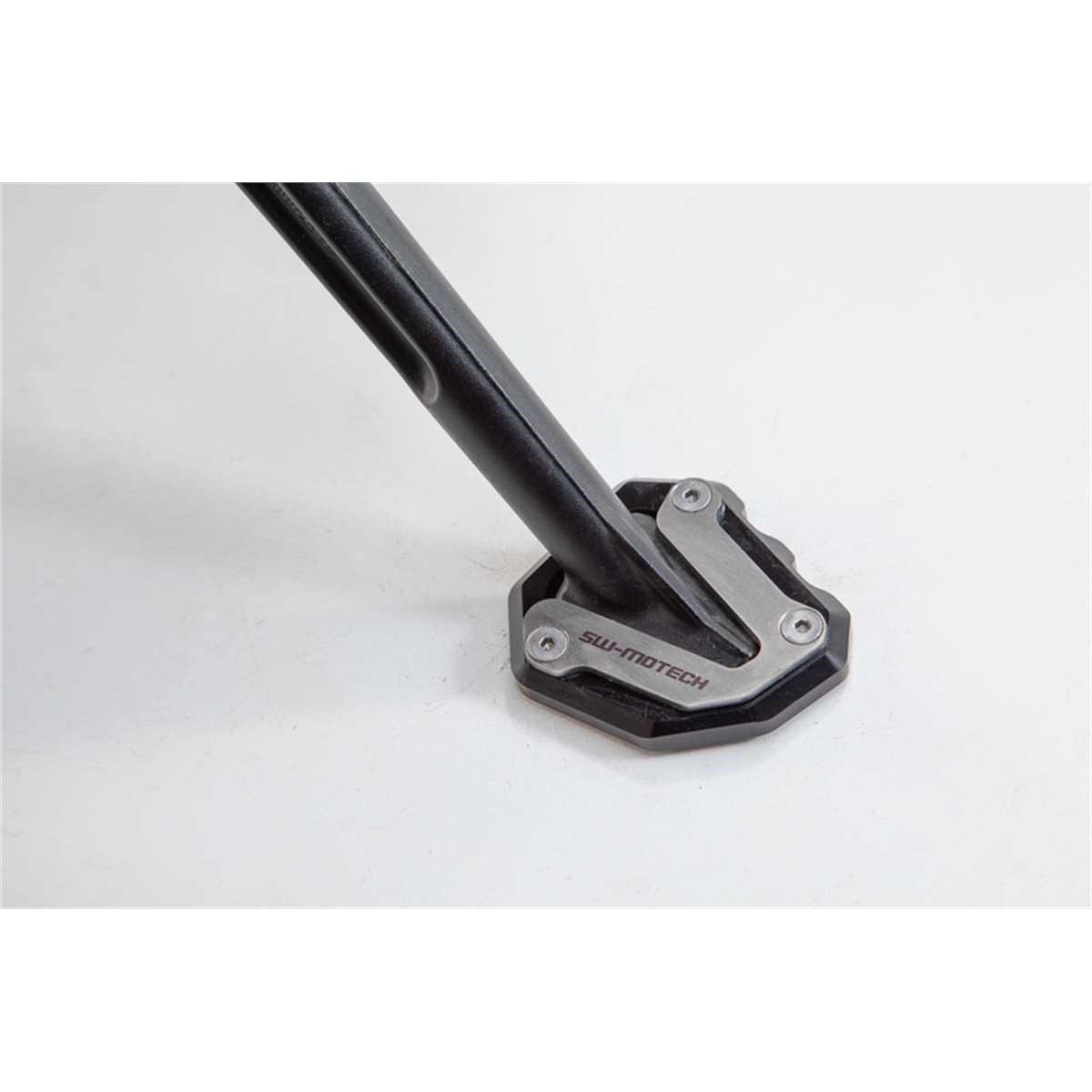 Die formschöne Fussverbreiterung ist aus hochfester Aluminium-Legierung CNC-gefrässt. Dank der grosszügigen Auflagefläche wird ein Versinken auf weichem Untergrund verhindert. Der Verbreiterungsfuss ist silber eloxiert, das obere Anbaublech schwarz pulverbeschichtet.