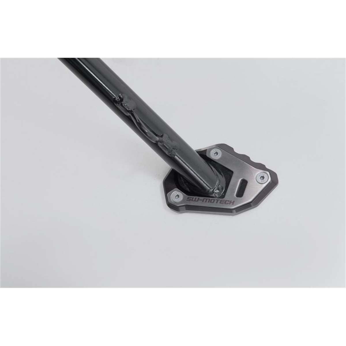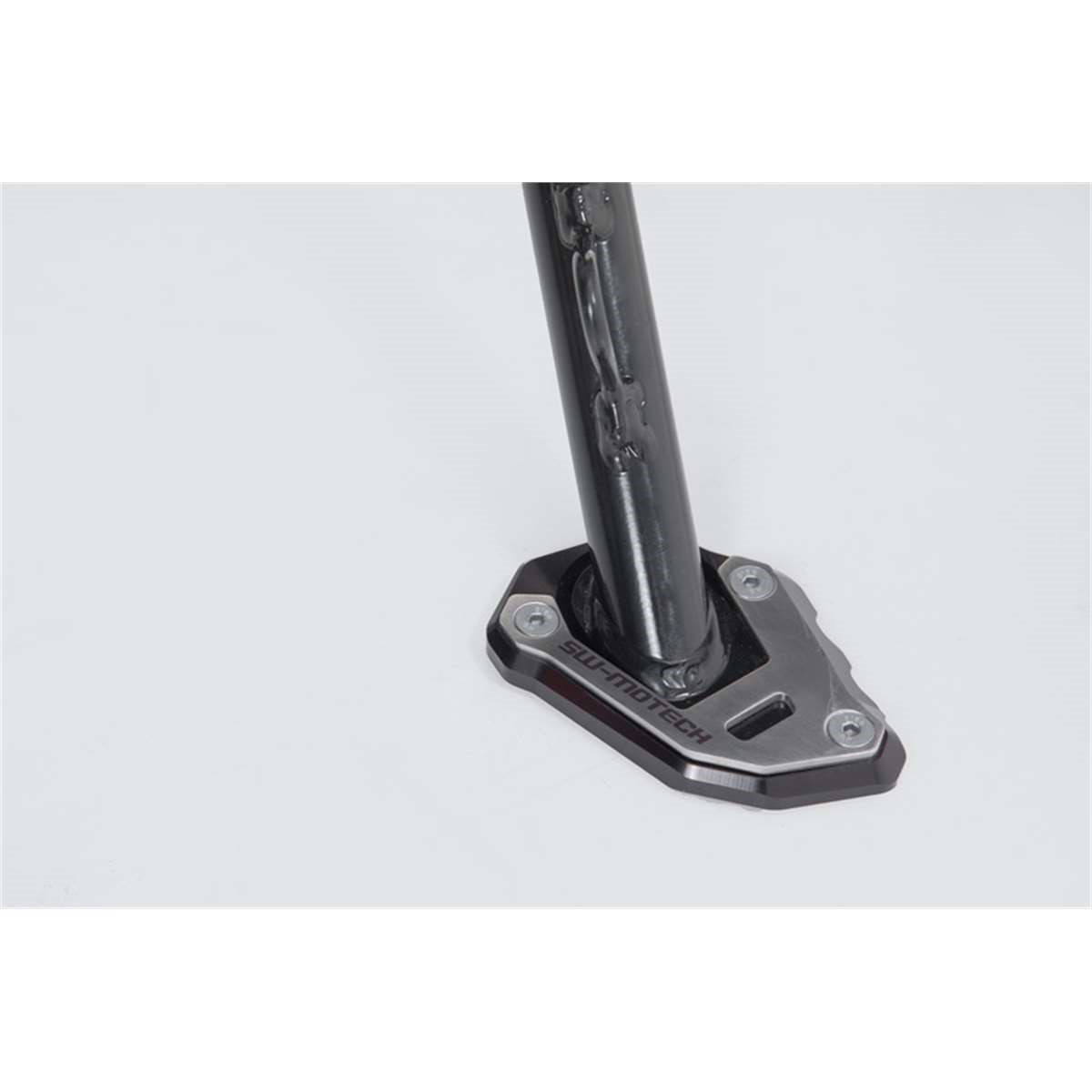 Die formschöne Fussverbreiterung ist aus hochfester Aluminium-Legierung CNC-gefrässt. Dank der grosszügigen Auflagefläche wird ein Versinken auf weichem Untergrund verhindert. Der Verbreiterungsfuss ist silber eloxiert, das obere Anbaublech schwarz pulverbeschichtet.