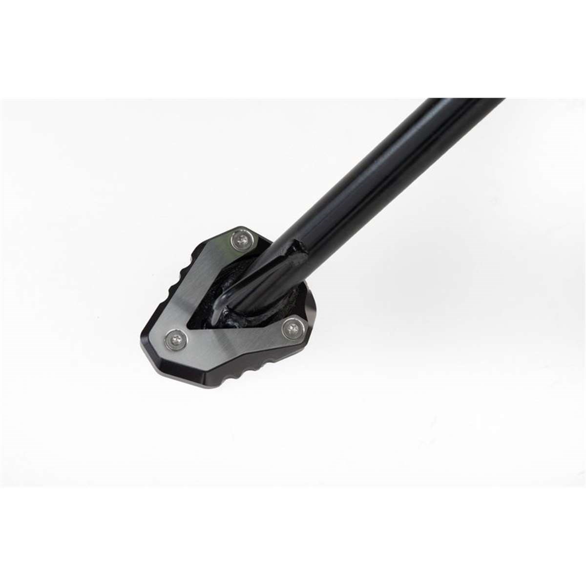 Die formschöne Fussverbreiterung ist aus hochfester Aluminium-Legierung CNC-gefrässt. Dank der grosszügigen Auflagefläche wird ein Versinken auf weichem Untergrund verhindert. Der Verbreiterungsfuss ist silber eloxiert, das obere Anbaublech schwarz pulverbeschichtet.