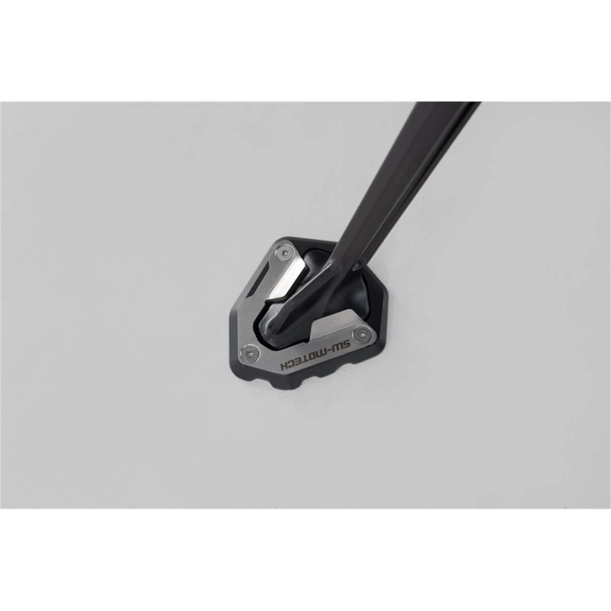 Die formschöne Fussverbreiterung ist aus hochfester Aluminium-Legierung CNC-gefrässt. Dank der grosszügigen Auflagefläche wird ein Versinken auf weichem Untergrund verhindert. Der Verbreiterungsfuss ist silber eloxiert, das obere Anbaublech schwarz pulverbeschichtet.
