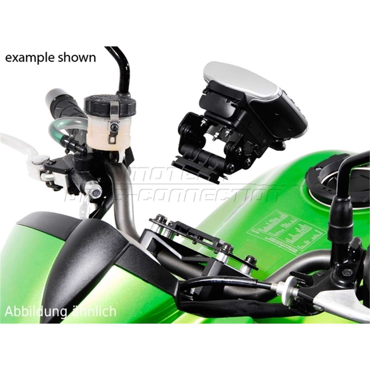 Abnehmbare GPS-Halterung für sorgenfreies Pausieren. Der GPS-Halter und das GPS-Gerät lassen sich in sekundenschnelle ab- und anmontieren. Vibrations- und Stossübertragungen werden weiterhin reduziert.