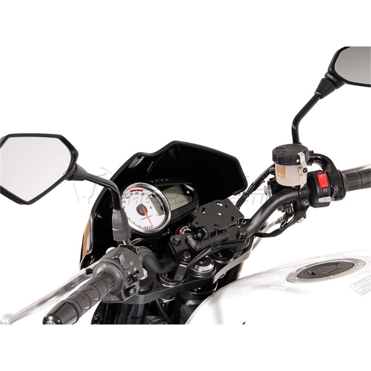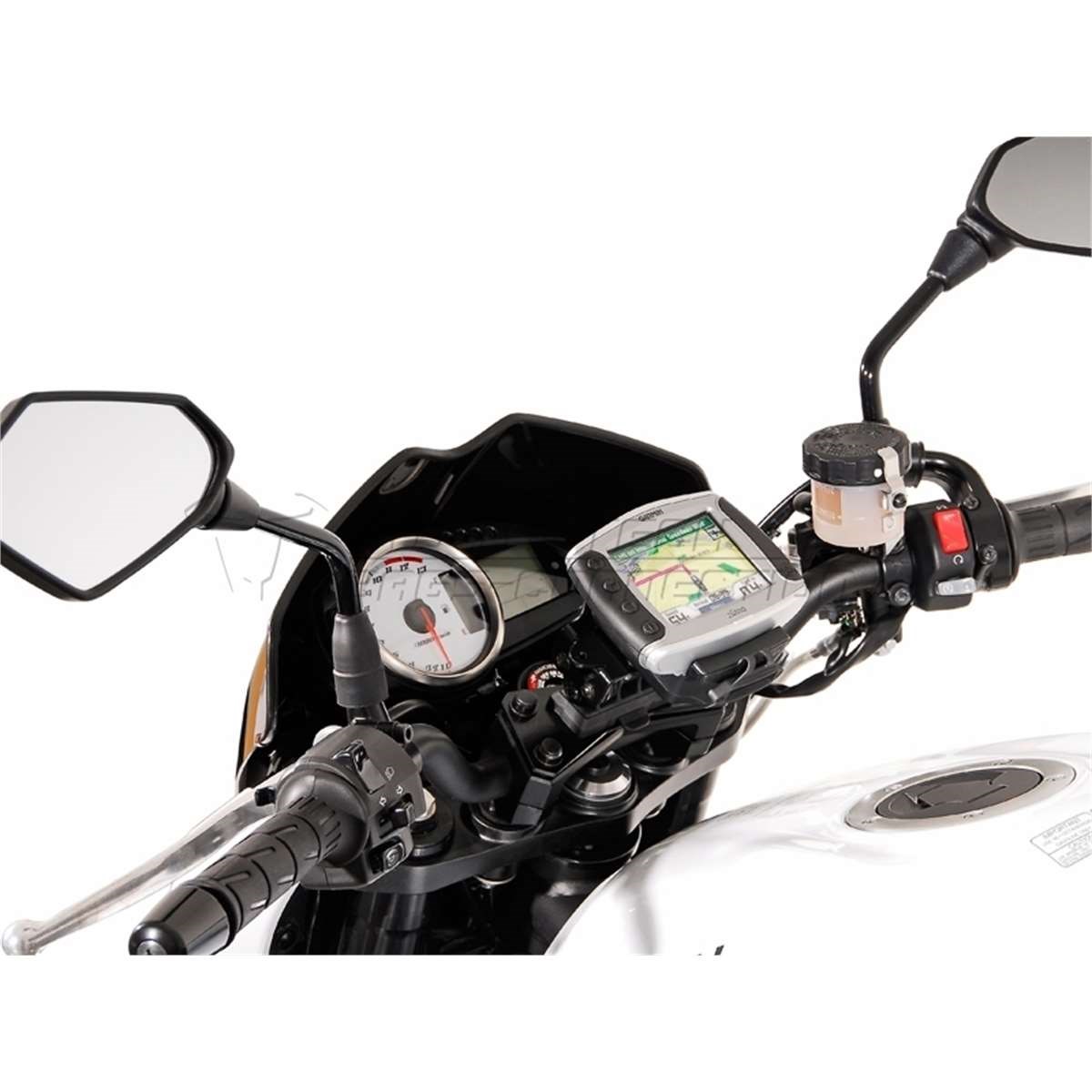 Abnehmbare GPS-Halterung für sorgenfreies Pausieren. Der GPS-Halter und das GPS-Gerät lassen sich in sekundenschnelle ab- und anmontieren. Vibrations- und Stossübertragungen werden weiterhin reduziert.