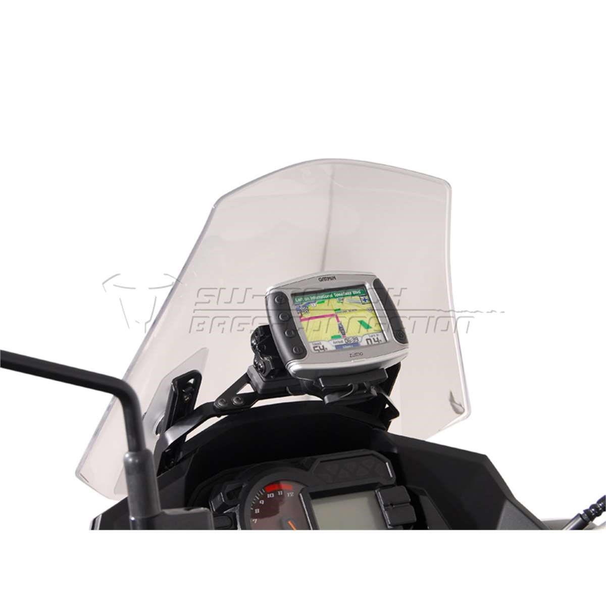 Abnehmbare GPS-Halterung für sorgenfreies Pausieren. Der GPS-Halter und das GPS-Gerät lassen sich in sekundenschnelle ab- und anmontieren. Vibrations- und Stossübertragungen werden weiterhin reduziert.