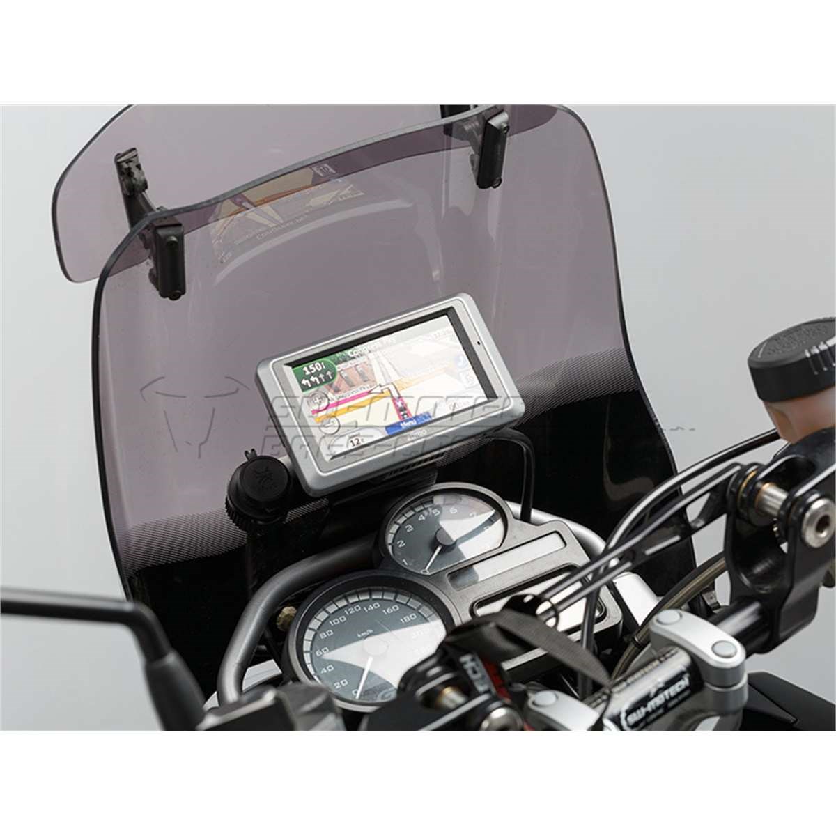 Abnehmbare GPS-Halterung für sorgenfreies Pausieren. Der GPS-Halter und das GPS-Gerät lassen sich in sekundenschnelle ab- und anmontieren. Vibrations- und Stossübertragungen werden weiterhin reduziert.