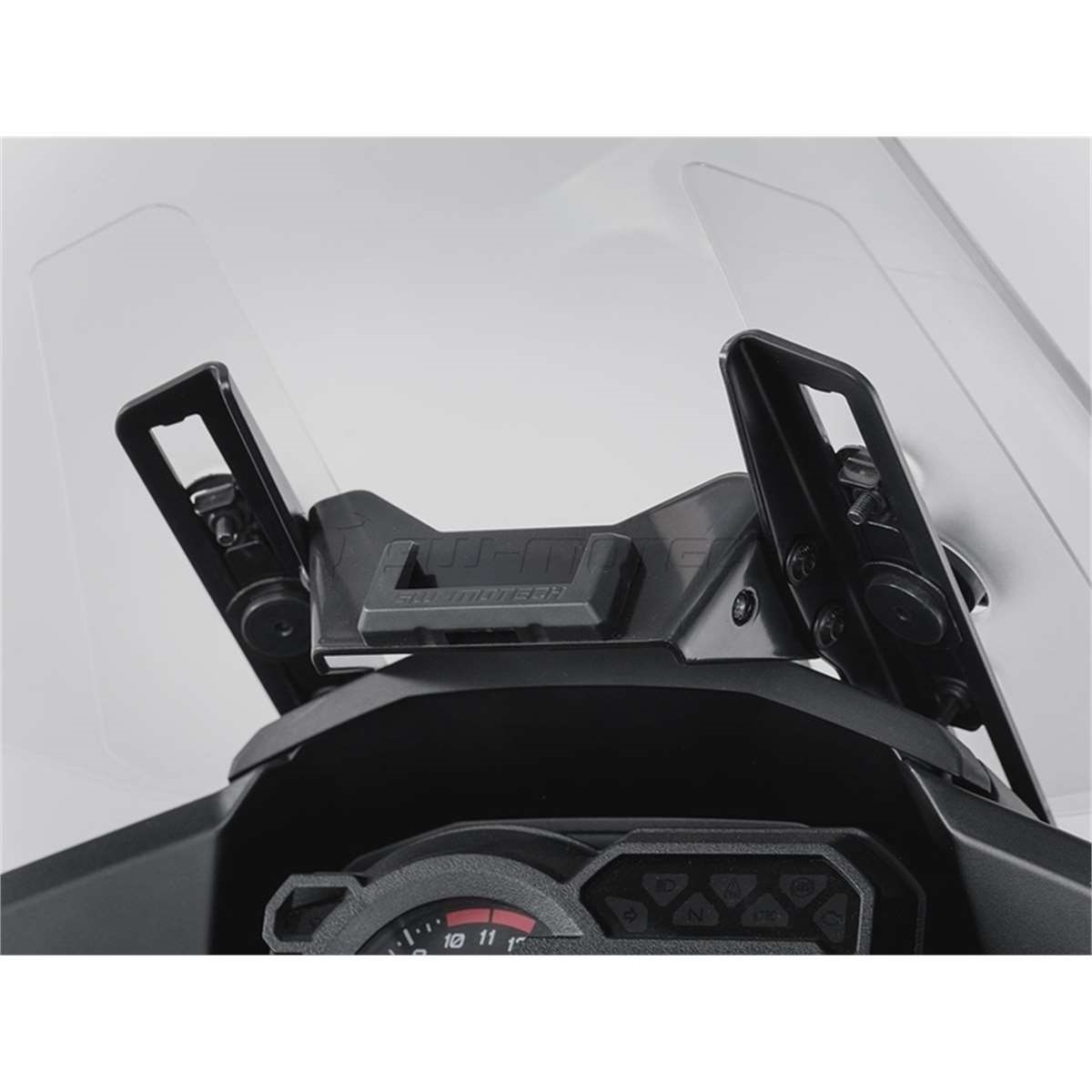 Abnehmbare GPS-Halterung für sorgenfreies Pausieren. Der GPS-Halter und das GPS-Gerät lassen sich in sekundenschnelle ab- und anmontieren. Vibrations- und Stossübertragungen werden weiterhin reduziert.