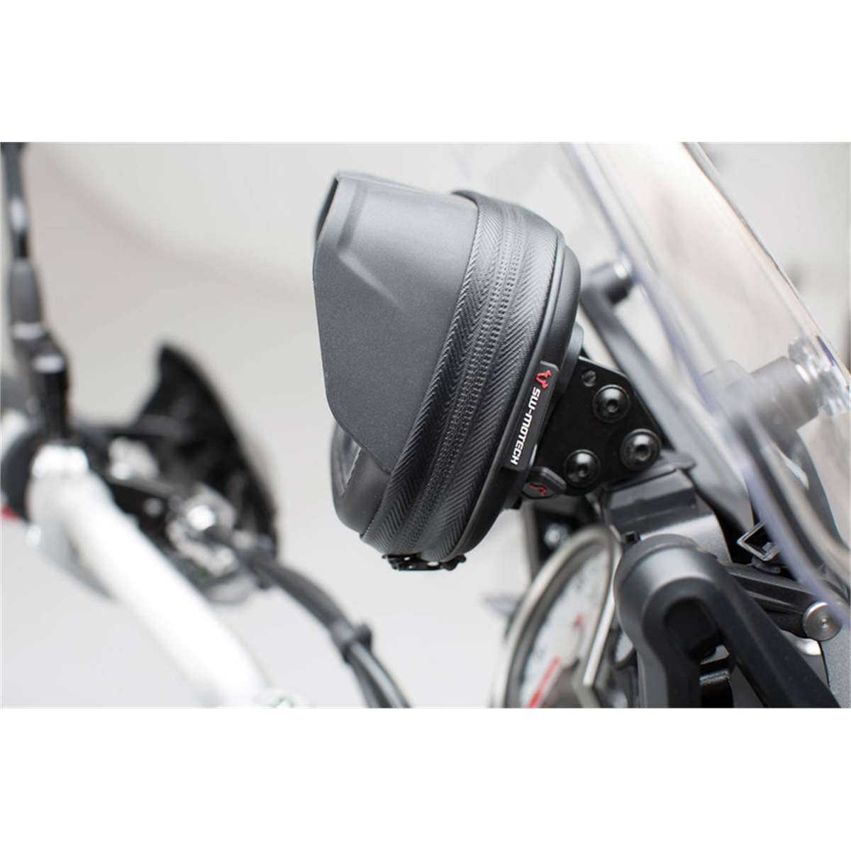 Abnehmbare GPS-Halterung für sorgenfreies Pausieren. Der GPS-Halter und das GPS-Gerät lassen sich in sekundenschnelle ab- und anmontieren. Vibrations- und Stossübertragungen werden weiterhin reduziert.