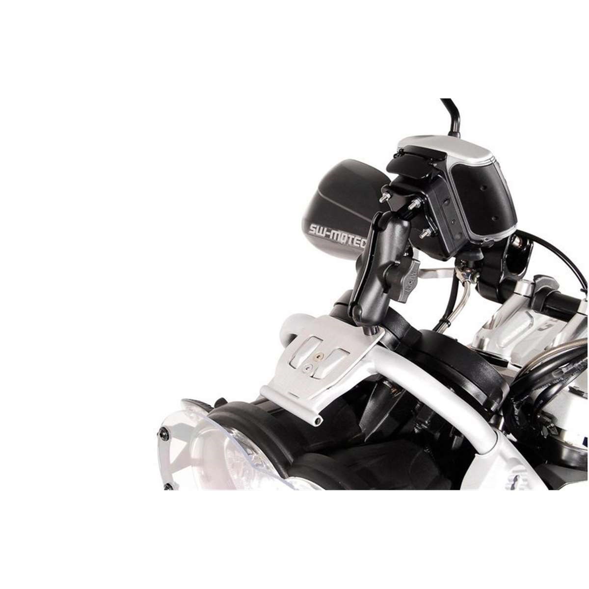 Abnehmbare GPS-Halterung für sorgenfreies Pausieren. Der GPS-Halter und das GPS-Gerät lassen sich in sekundenschnelle ab- und anmontieren. Vibrations- und Stossübertragungen werden weiterhin reduziert.