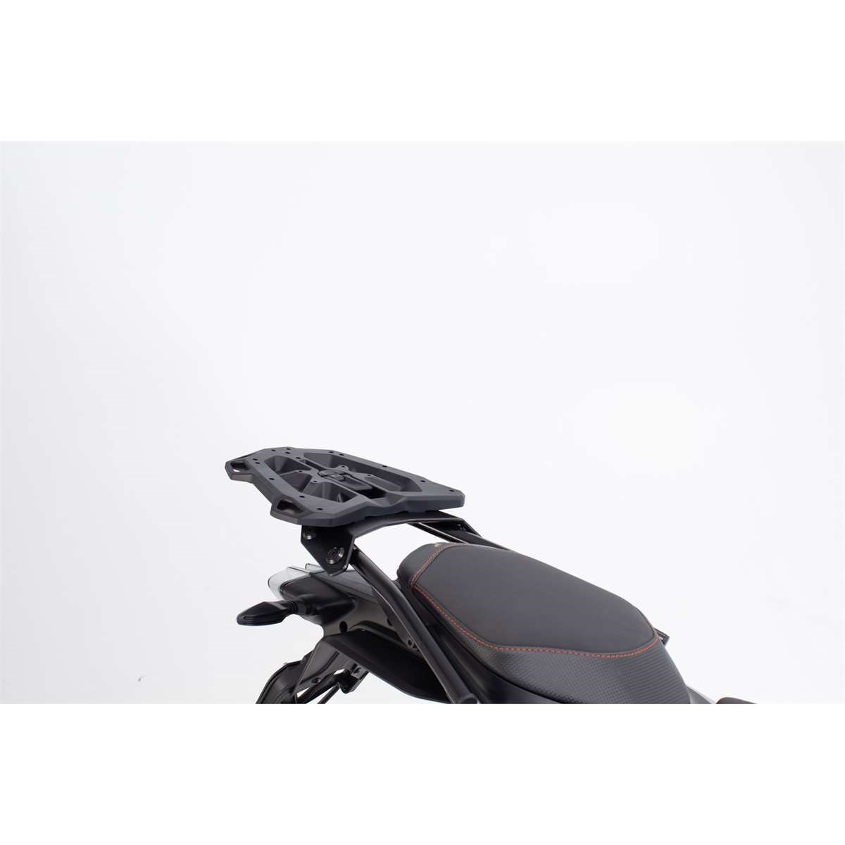 Ganz ohne Werkzeug und mit nur einem Handgriff lässt sich diese Adapterplatte auf dem STREET-RACK Gepäckträger montieren. Die Adapterplatte wird einfach auf den Gepäckträger aufgeschoben und per Dreh-Spannverschluss sicher arretiert. Nach der Tour lässt sich die Adapterplatte sekundenschnell abnehmen und am Motorrad verbleibt nur der Gepäckträger. Die Adapterplatte punktet zusätzlich mit einer großen und ebenen Auflagefläche und sechs großen Verzurrösen.