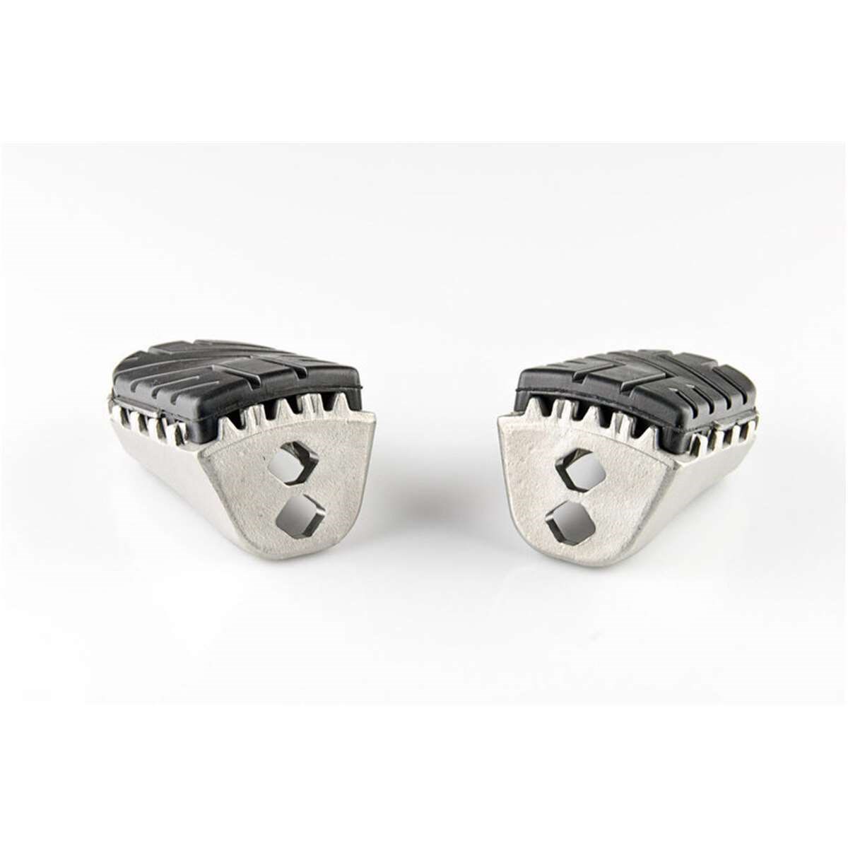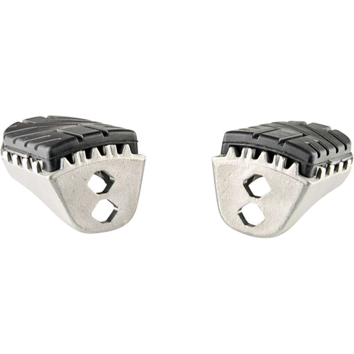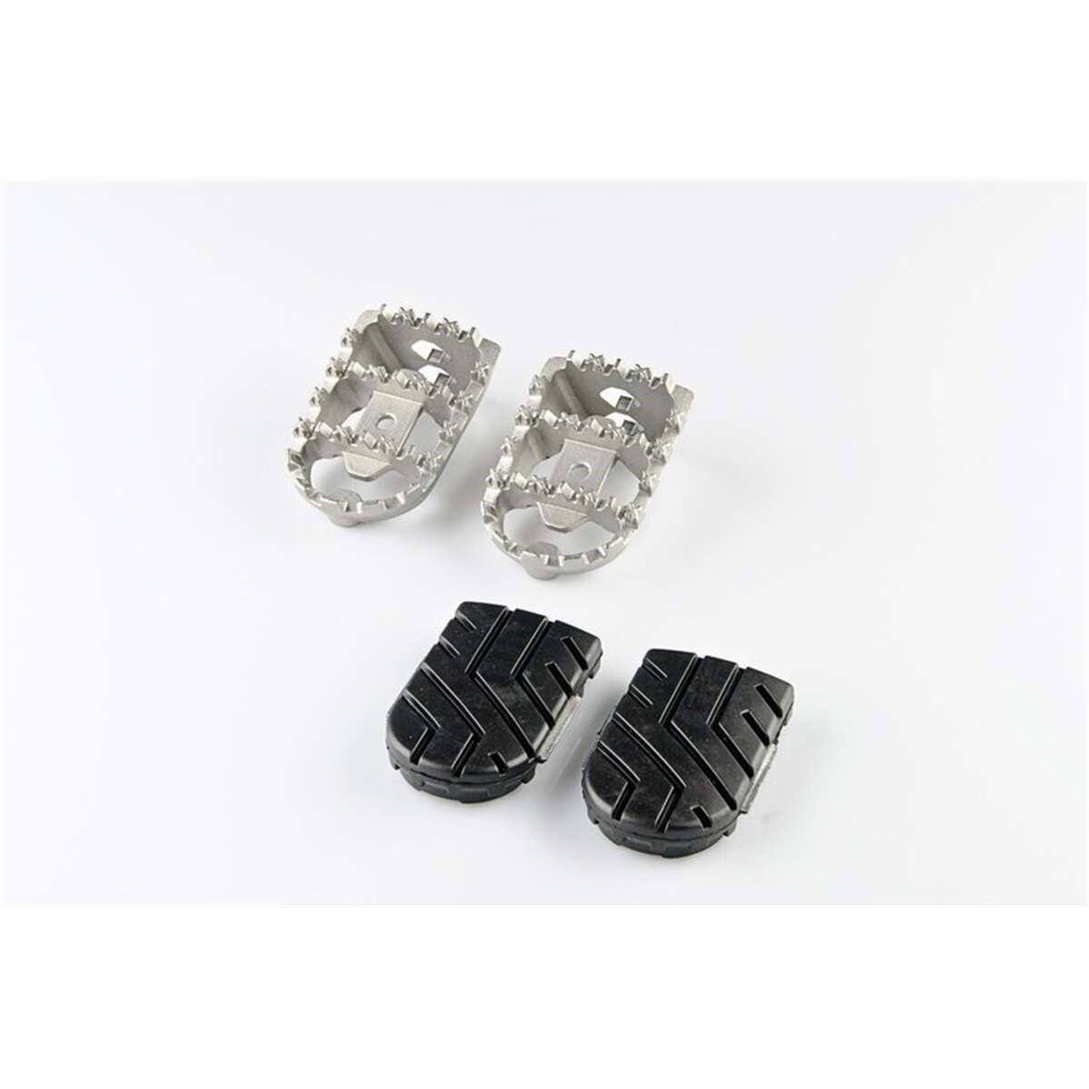 Die preiswerten ION Sozius Fussrasten-Kits erlauben die Montage der Sozius Fussraste in Originalhöhe oder eine Tieferlegung um 15 mm. Äusserst stabil und langlebig ausgelegt, bieten die Edelstahl-Sozius Fussrasten extra viel Grip und empfehlen sich für Adventure-, Offroad- und Strassenmaschinen. Gelenke aus hochfester Aluminium-Legierung sorgen dafür, dass die Raste beim Umfallen des Fahrzeuges wegklappen kann. Eine abnehmbare Gummi-Auflage reduziert Vibrationen, das Profil bietet guten Halt auch beim Offroad-Einsatz. Zur Montage der modellspezifischen Gelenkadapter an der Fussrasten-Aufnahme werden die original Anbauteile (Feder, Bolzen, ...) verwendet.